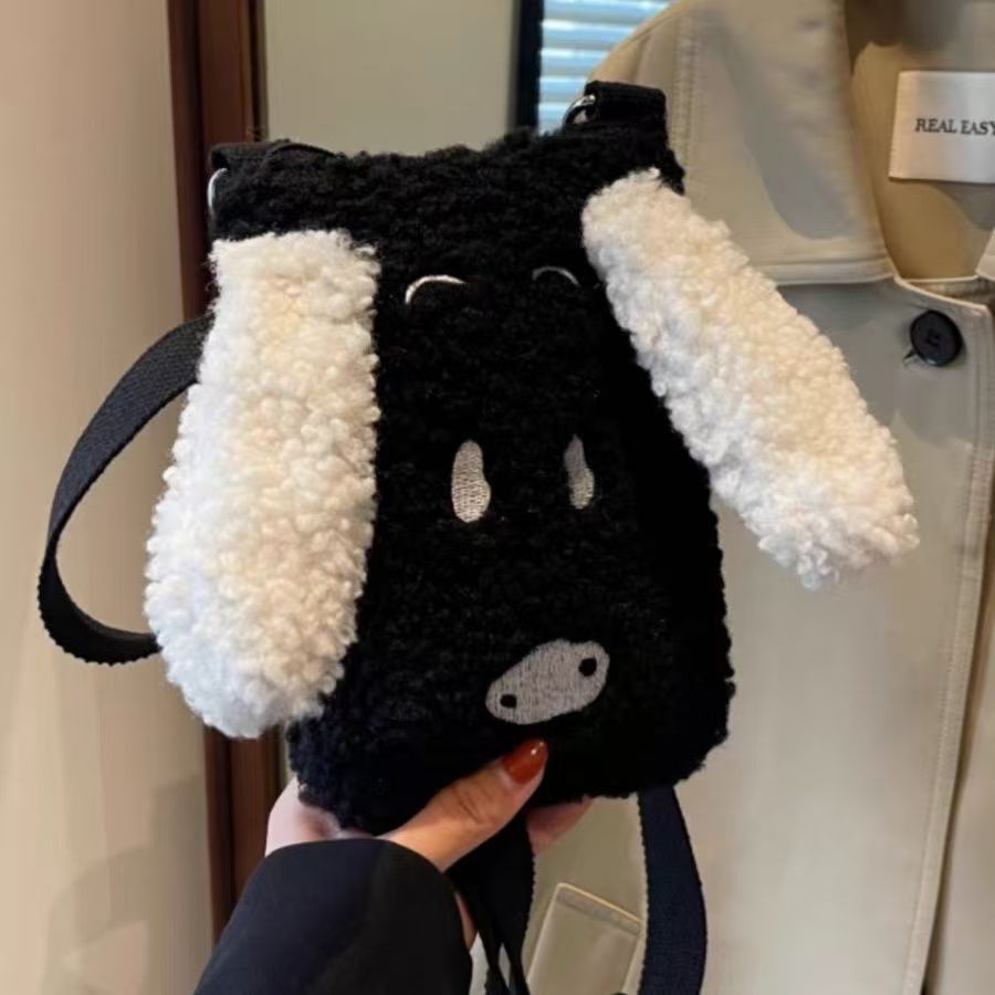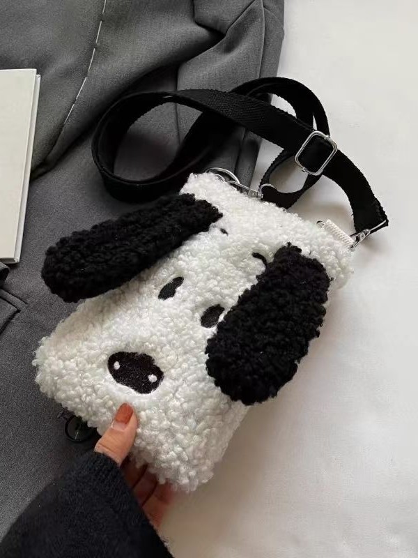 겨울 미니 가방 여성의 2024 새로운 귀여운 강아지 봉제 전화 가방 모든 경기 양고기 모피 크로스 바디 백스토어 가기