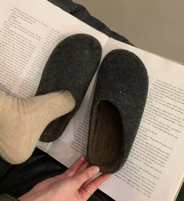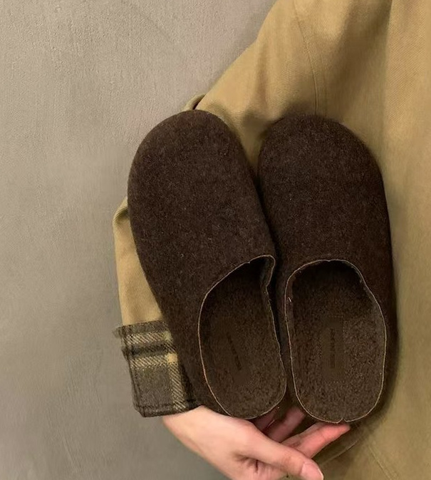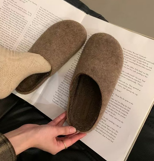 빈티지 라운드 Toe Baotou 하프 슬리퍼 여성용 가을 및 겨울 의상 코튼 슈즈 버켄 네스 기모 게으른 슬립 온 플랫폼스토어 가기