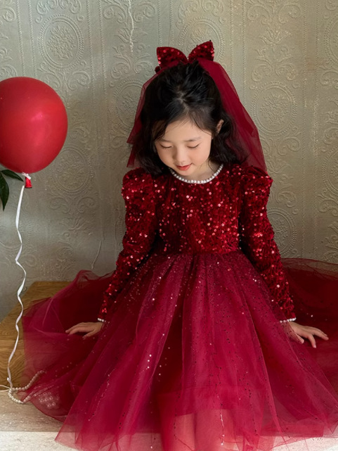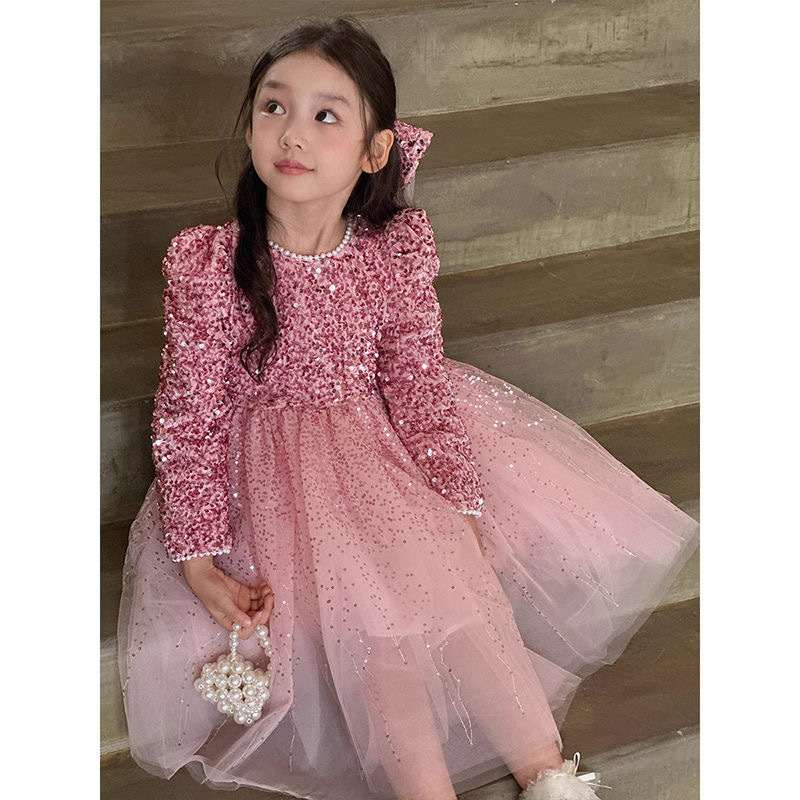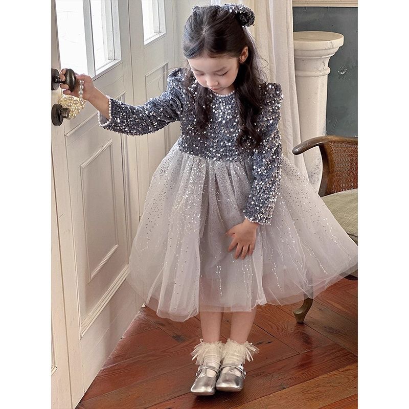 여아 가을 겨울 플리스 드레스 2025 신상 스타일리시한 여아 생일 드레스 웨딩 퍼프 스커트스토어 가기