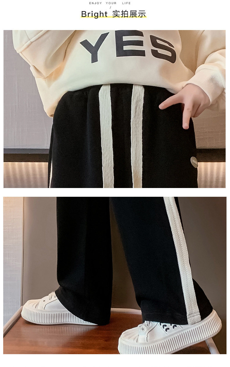 소녀 바지 가을과 겨울 2024 새로운 겨울 큰 어린이 넓은 다리 바지 기모 어린이 스포츠 캐주얼 스트레이트 바지스토어 가기