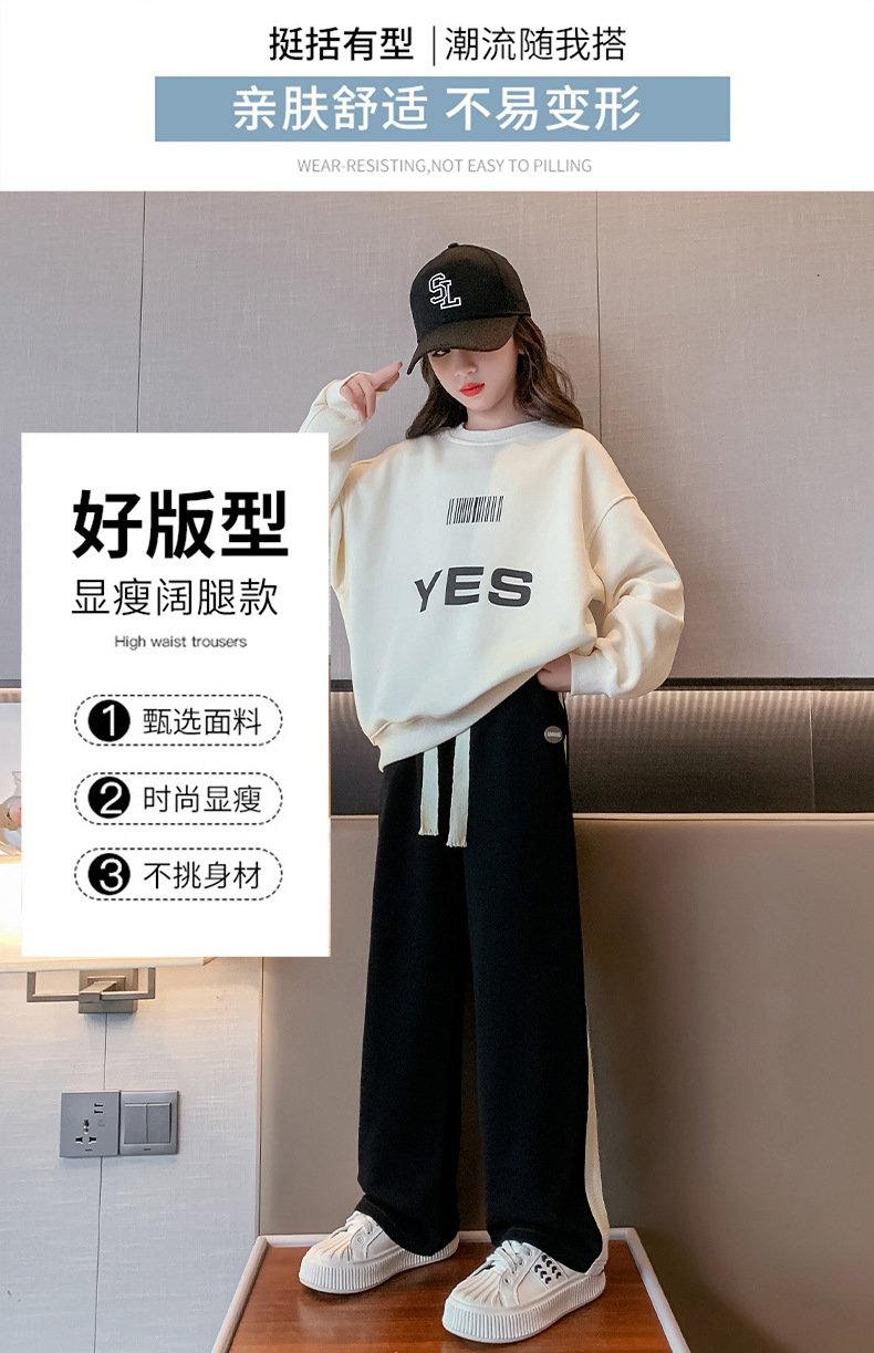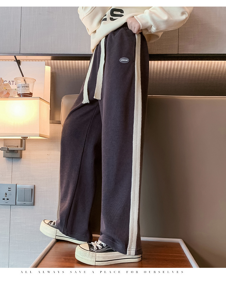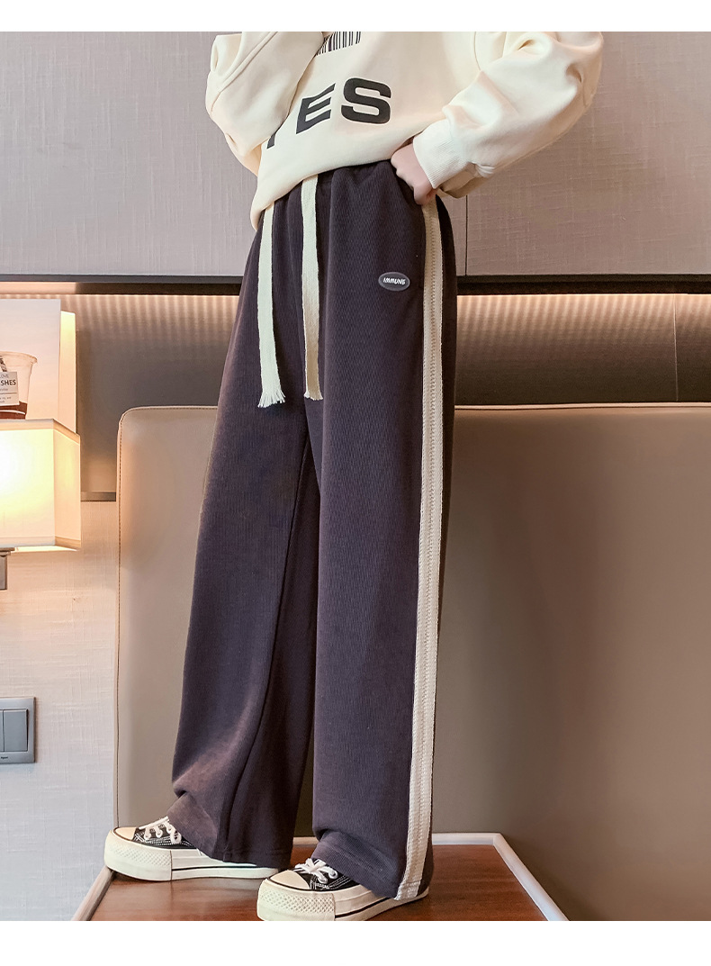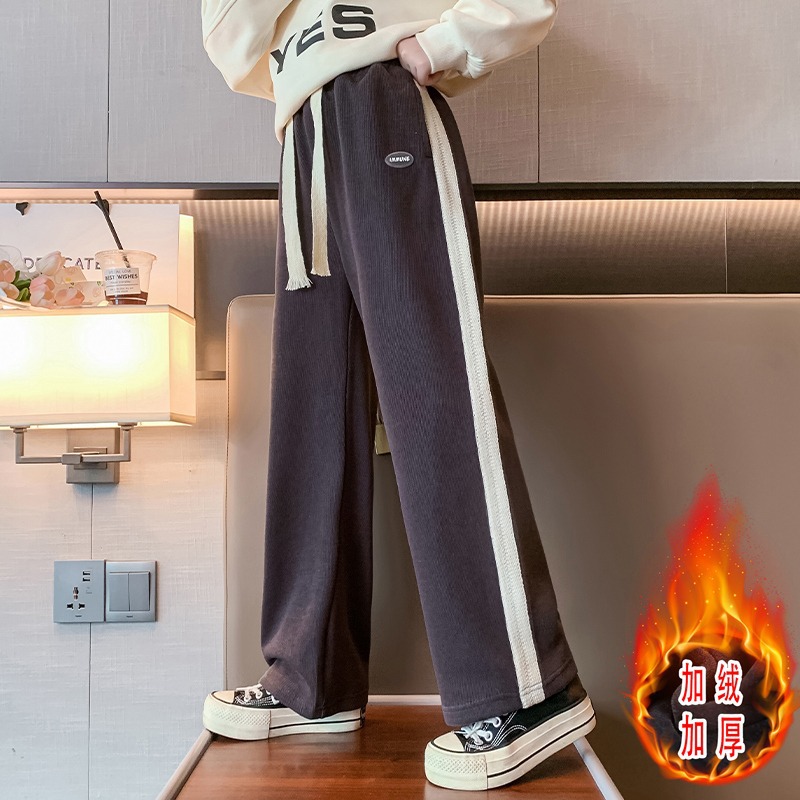 소녀 바지 가을과 겨울 2024 새로운 겨울 큰 어린이 넓은 다리 바지 기모 어린이 스포츠 캐주얼 스트레이트 바지