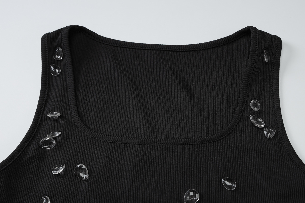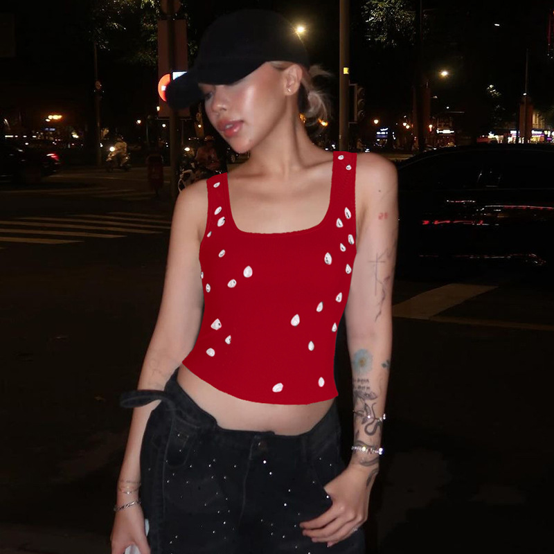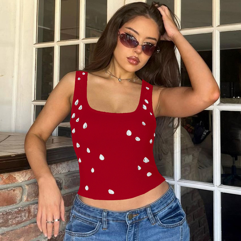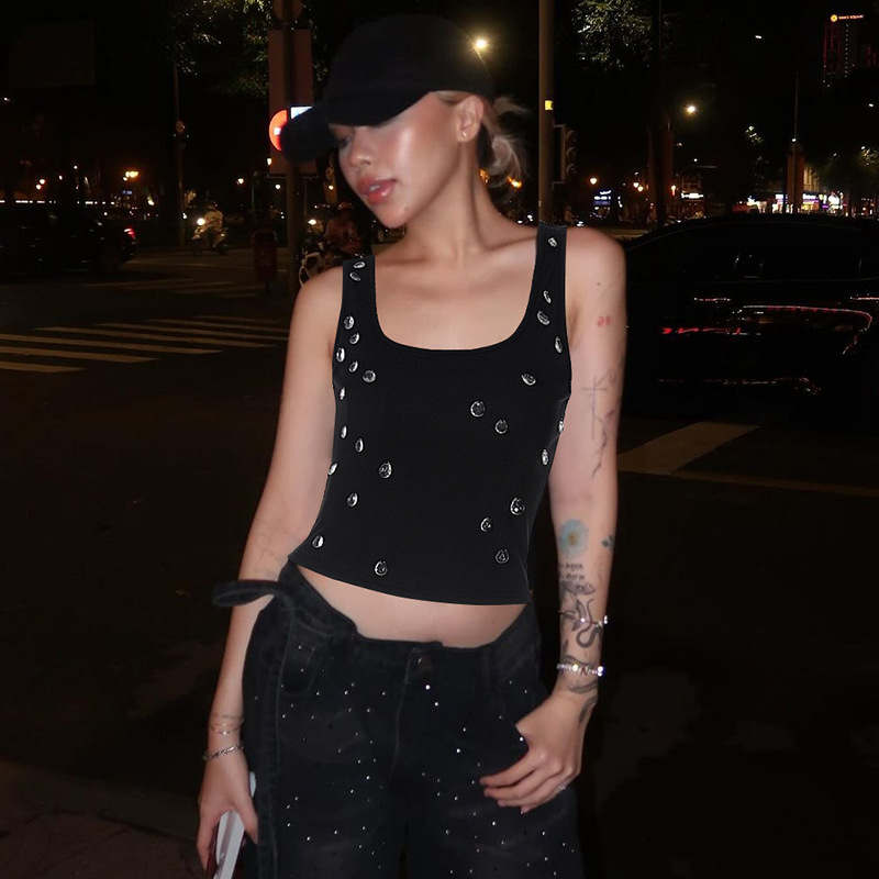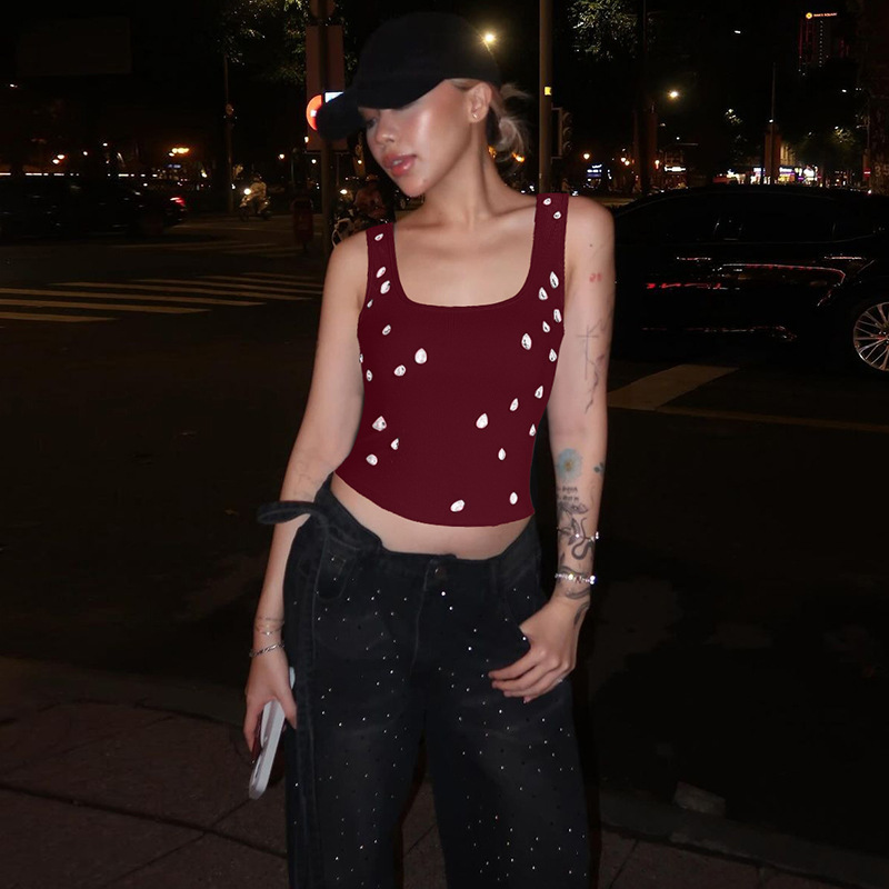 아마존 여성 의류 2025 여름 신작 패션 섹시 슬림 배꼽 노출 U 넥 조끼 구슬 장식 탑 도매스토어 가기