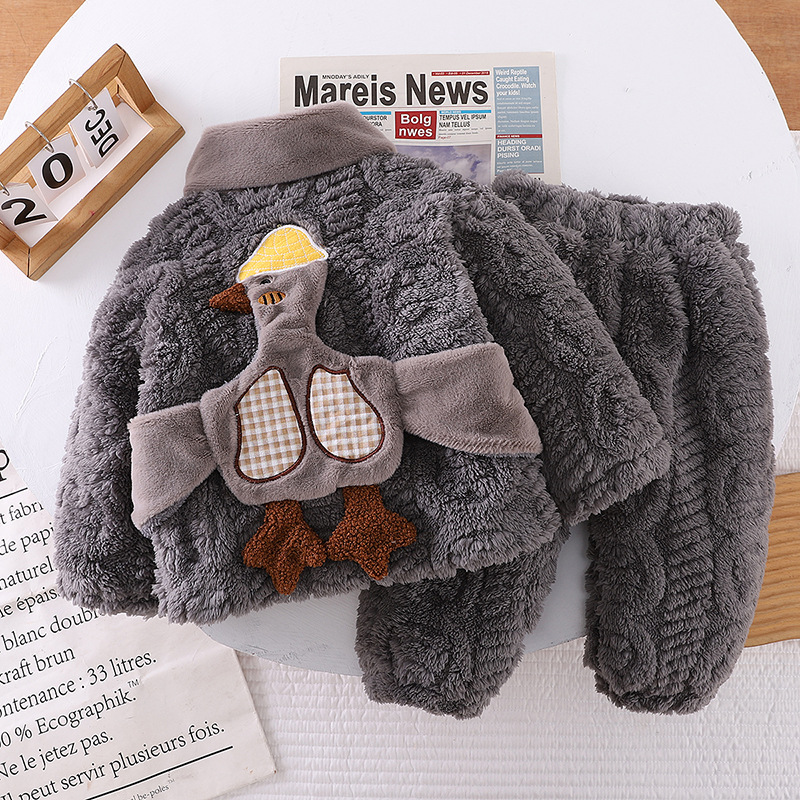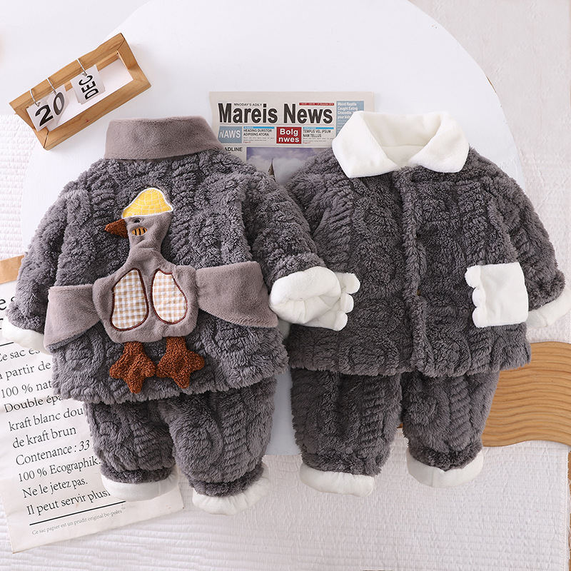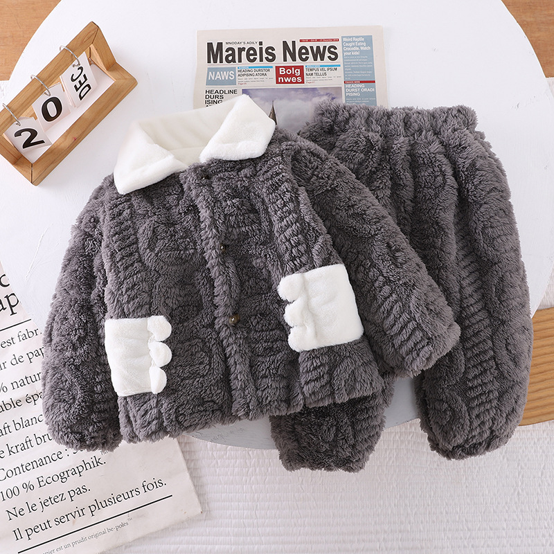 소년 겨울 잠옷 어린이 3 층 퀼트 플란넬 2 피스 아기 홈 옷 두꺼운 산호 양털 세트