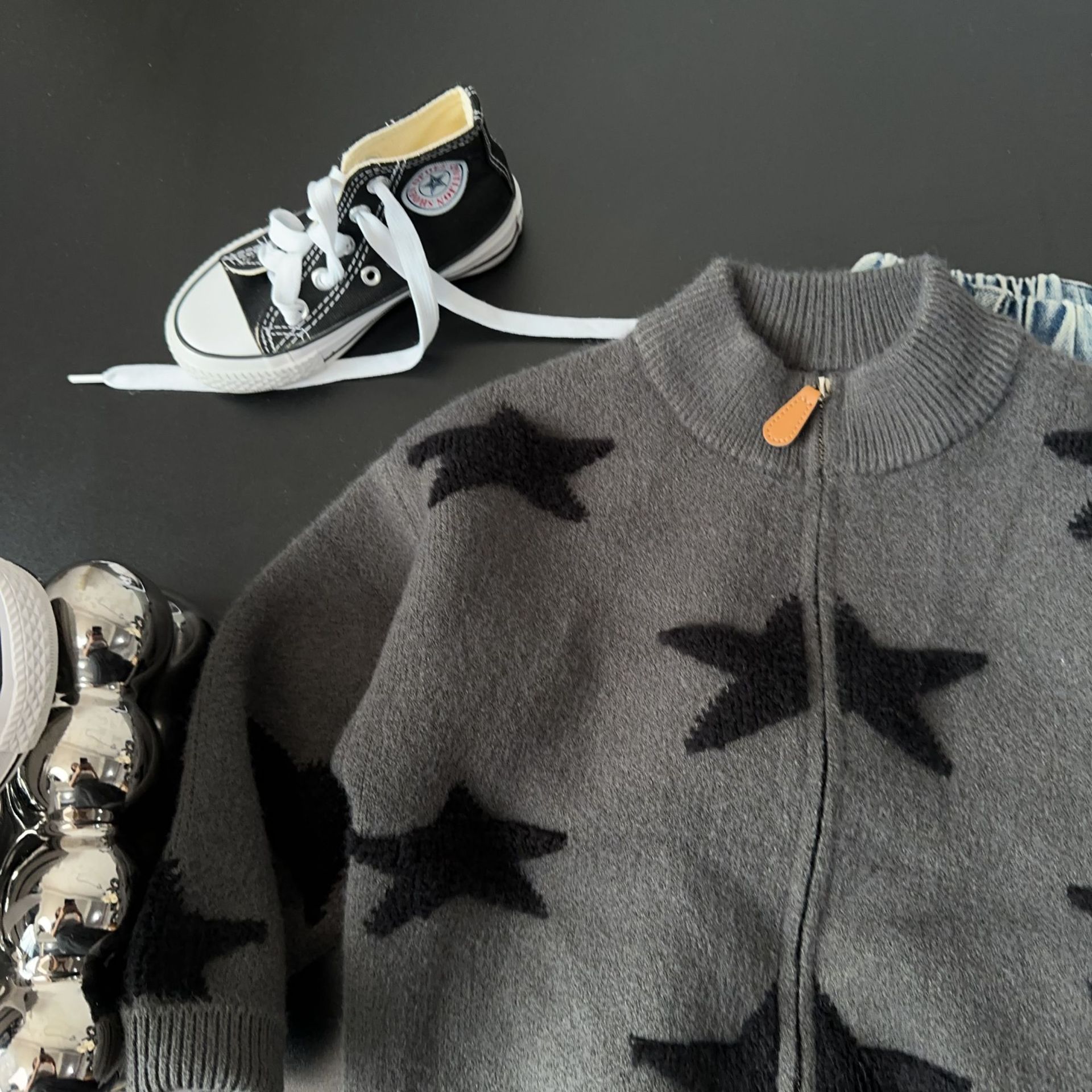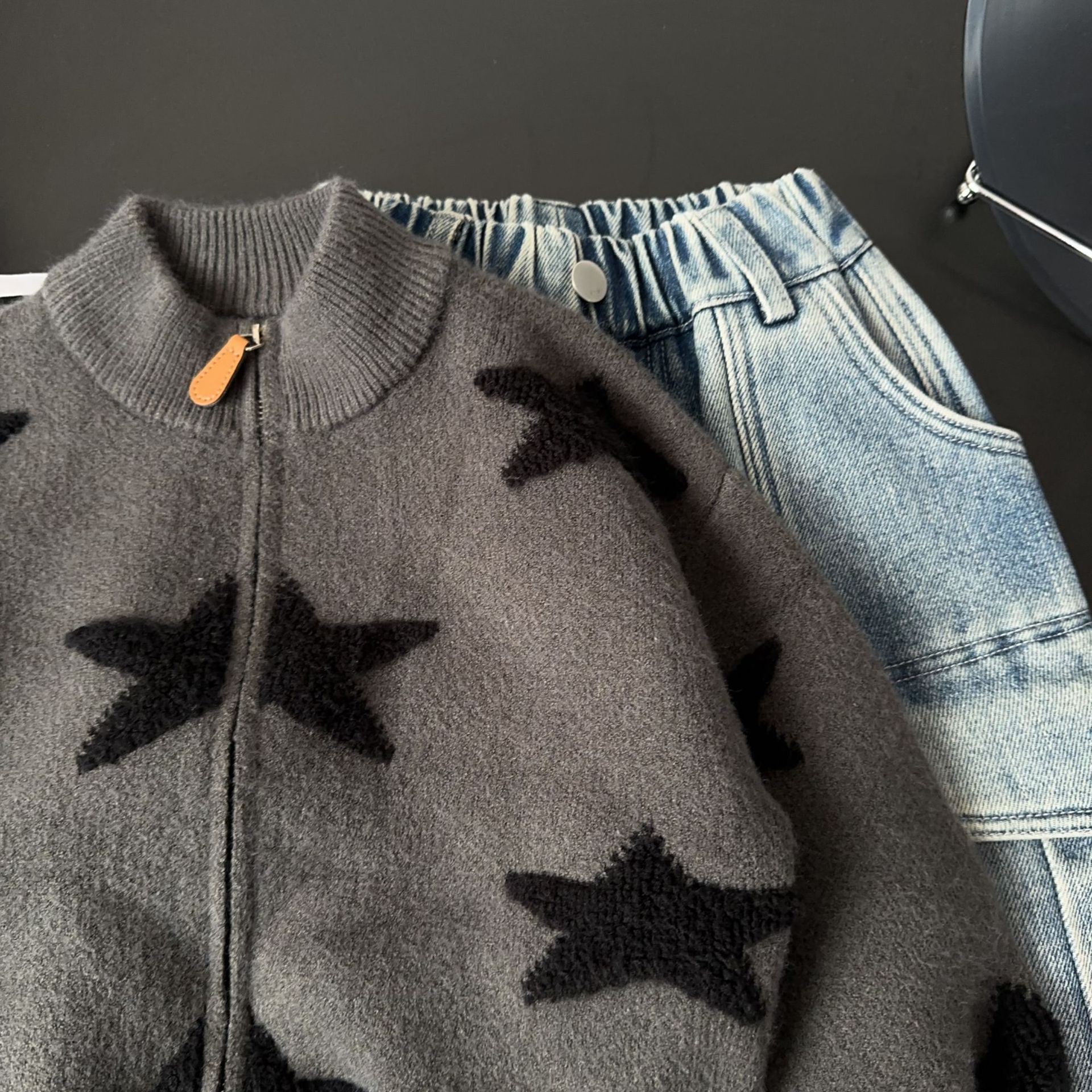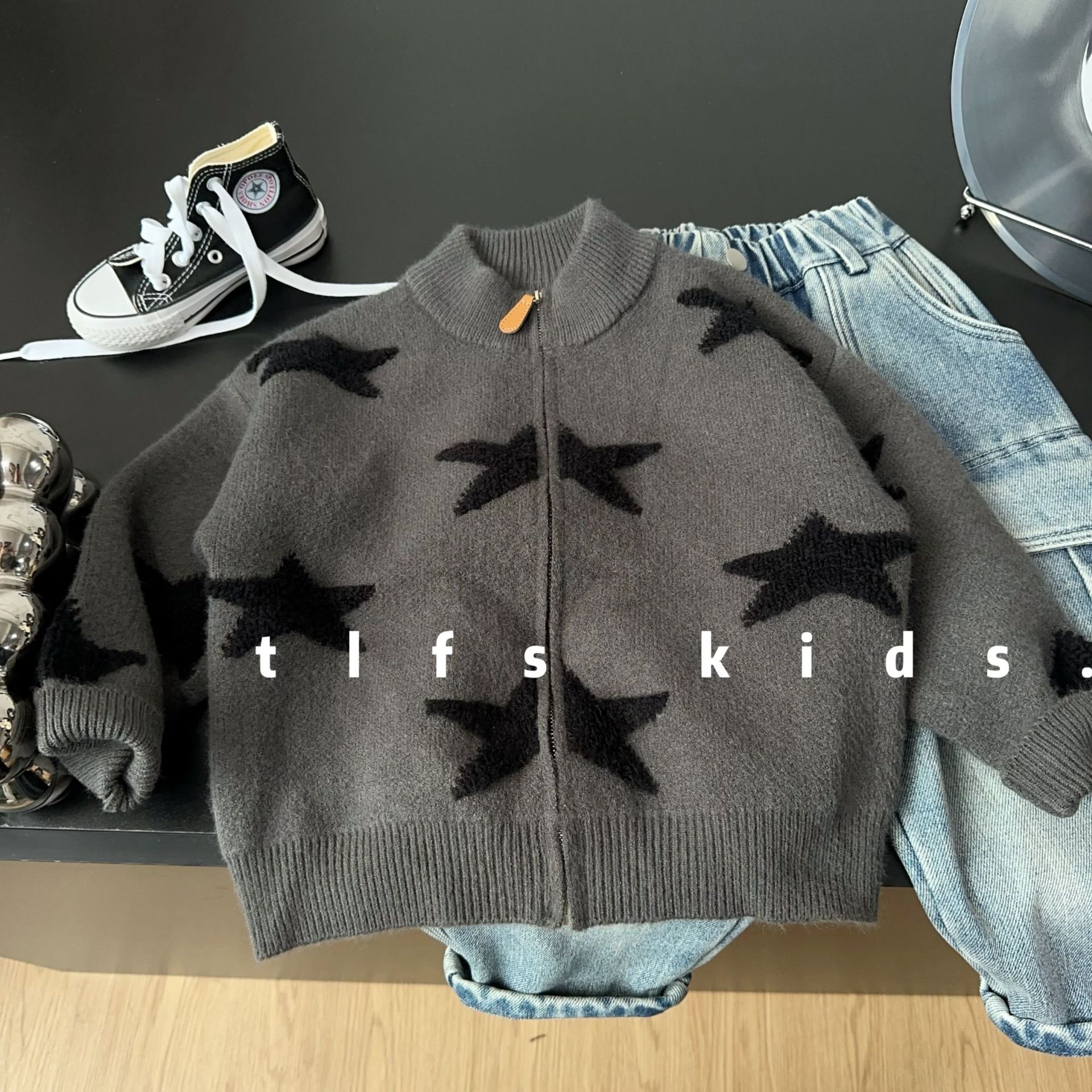 어린이 "두꺼운 암호화 스타 니트 스웨터" 가을 및 겨울 소프트 왁스 캐주얼 스웨터 올매치 지퍼 외부 소년 소녀스토어 가기