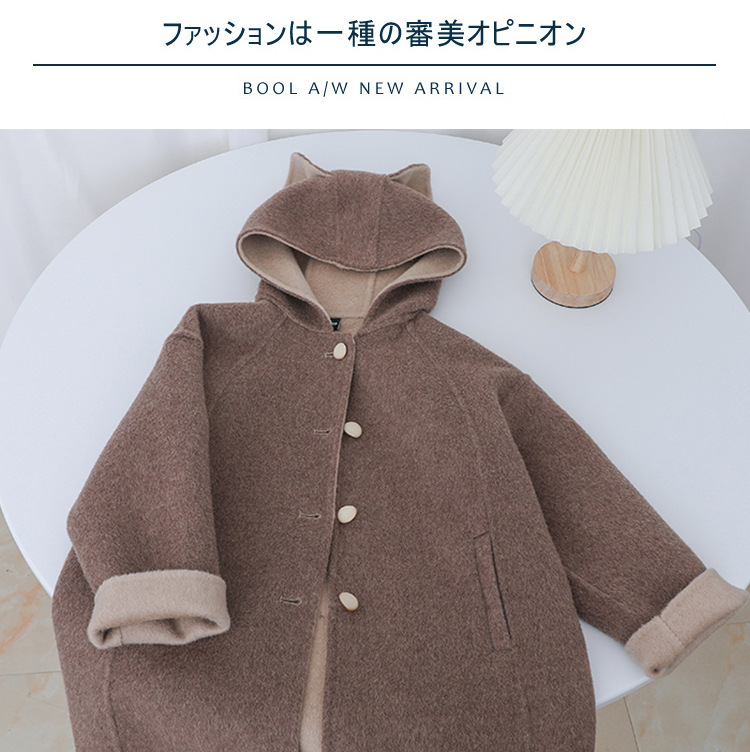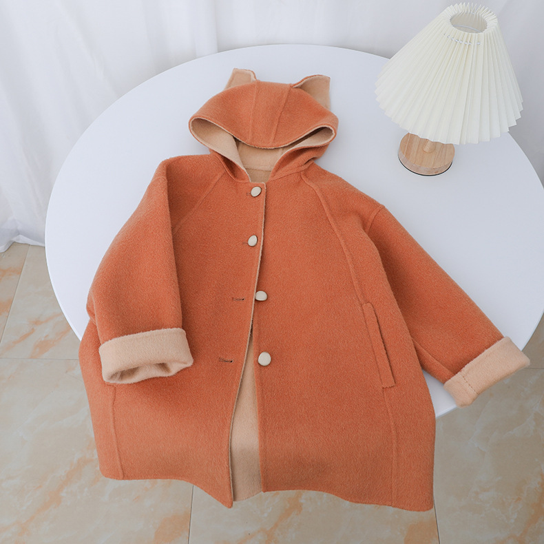 2025년 신상 양모 양면 코트 남아 여아 어린이 여우 귀 모양 모직 코트 겨울 중대형 어린이용스토어 가기