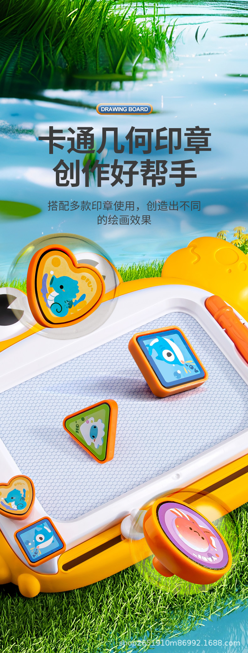 • 스탬프가 있는 큰 게 드로잉 보드 노란색(색상 상자)