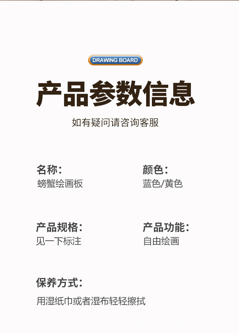 产品品名:螃蟹桌面画板(3粒5号电池不包)