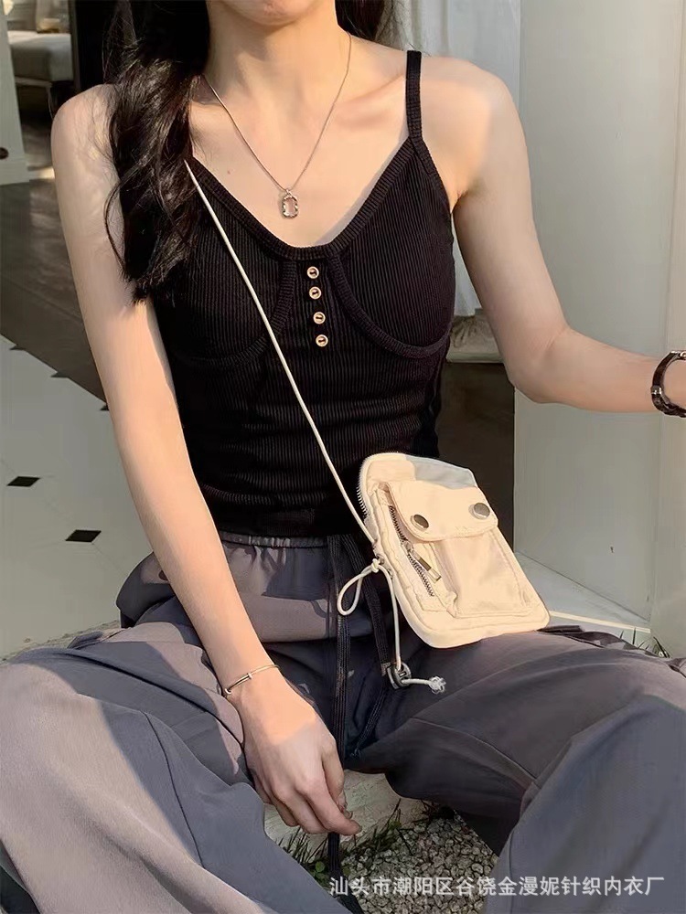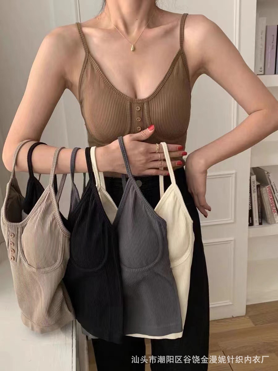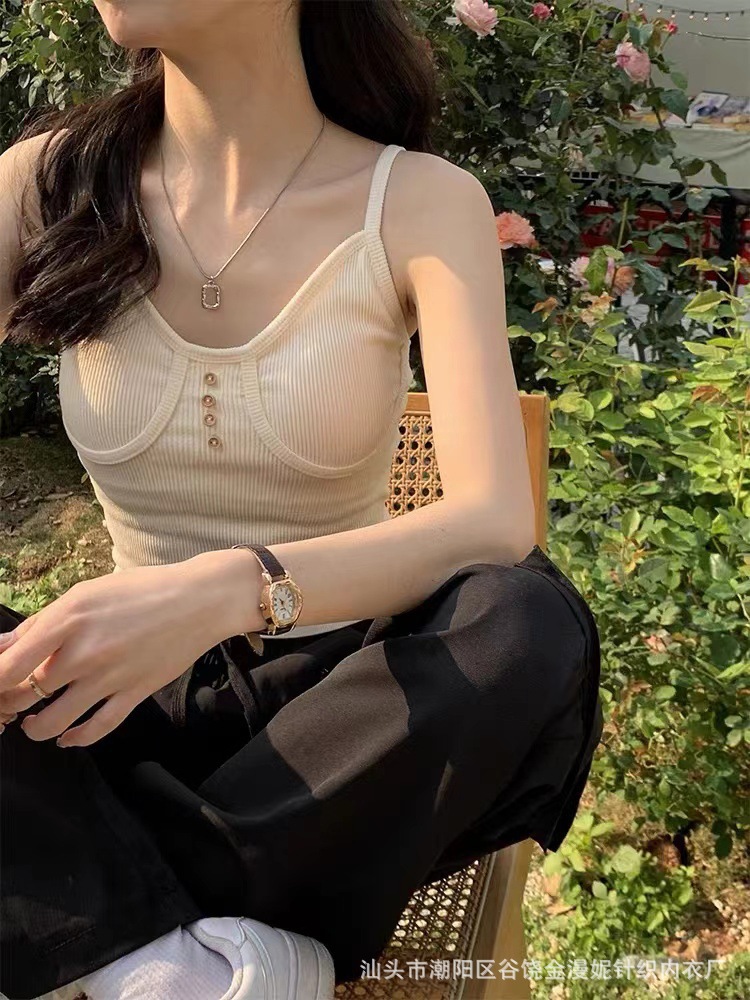 순수한 욕망 작은 Camisole 2023 여성을위한 가슴 패드 내베이스 자켓과 새로운 스타일 버튼 디자인 세트 재킷스토어 가기