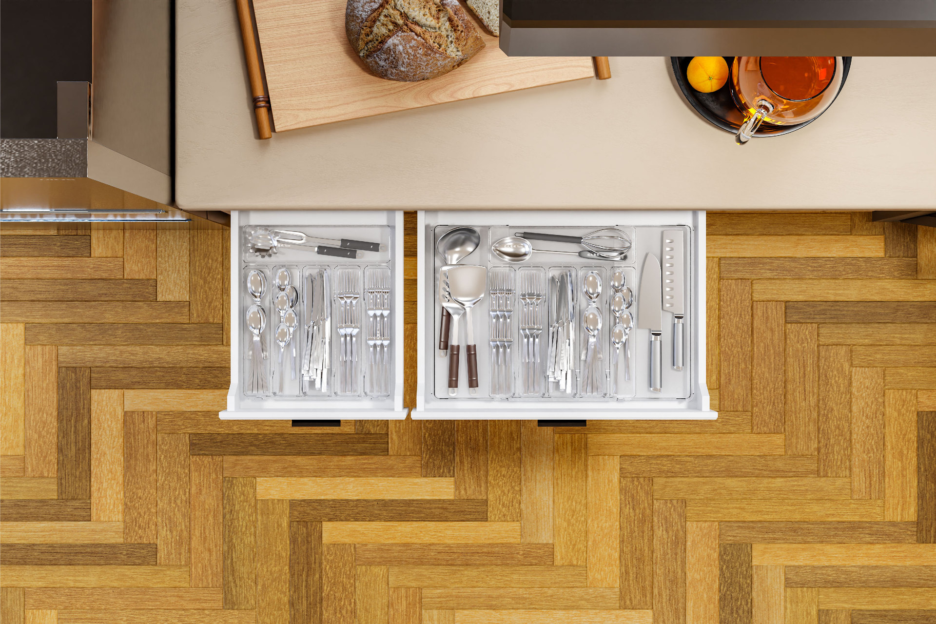 국경 투명 식기 주방 마감 상자 서랍 텔레스코픽 실버 웨어 다기능 저장 상자 나이프와 포크 파티션 텔레스코픽 상자