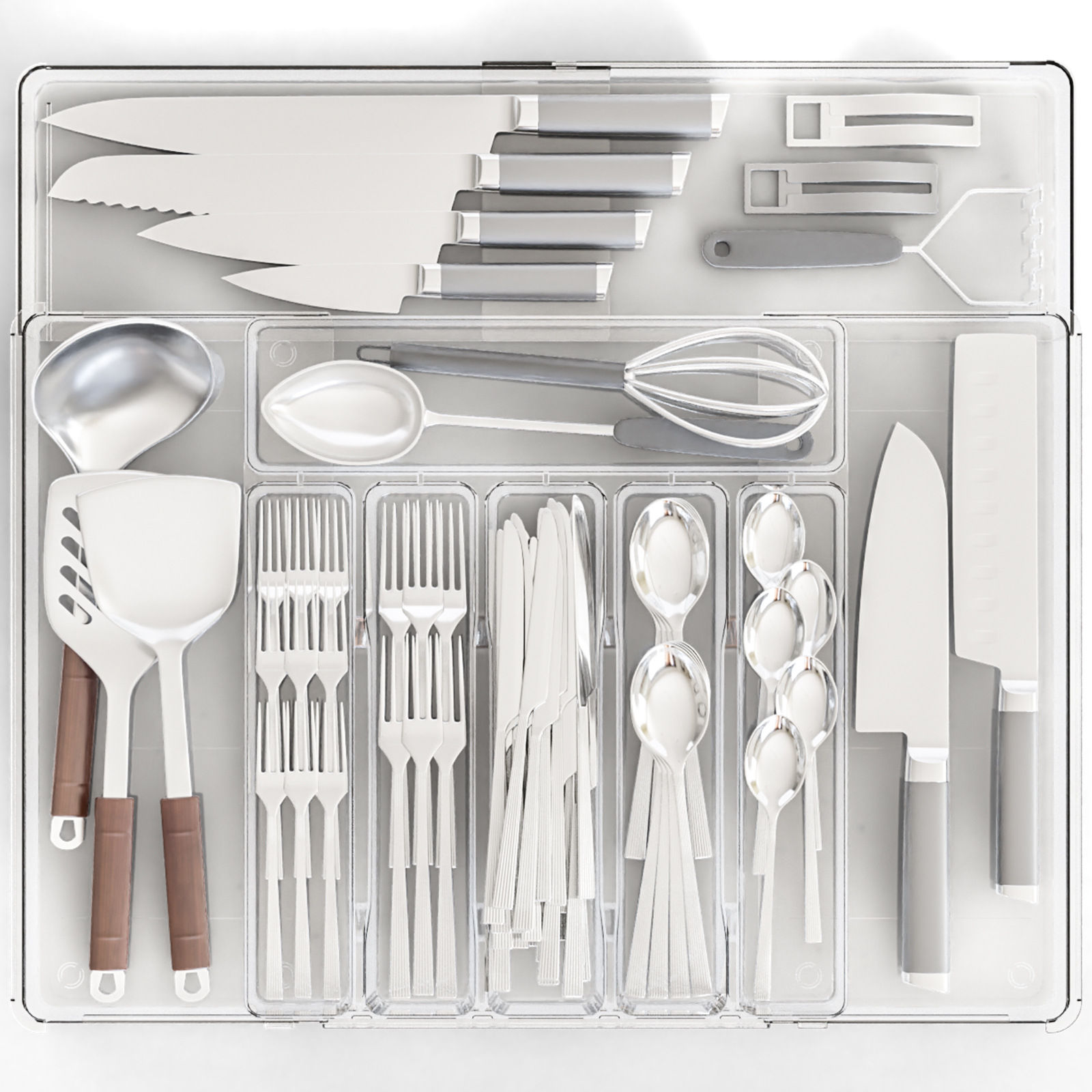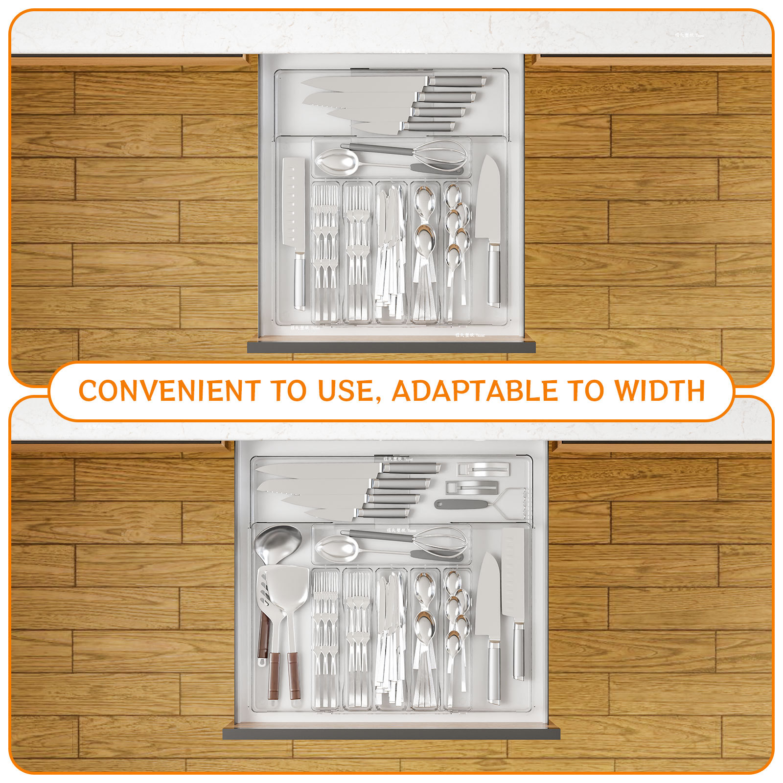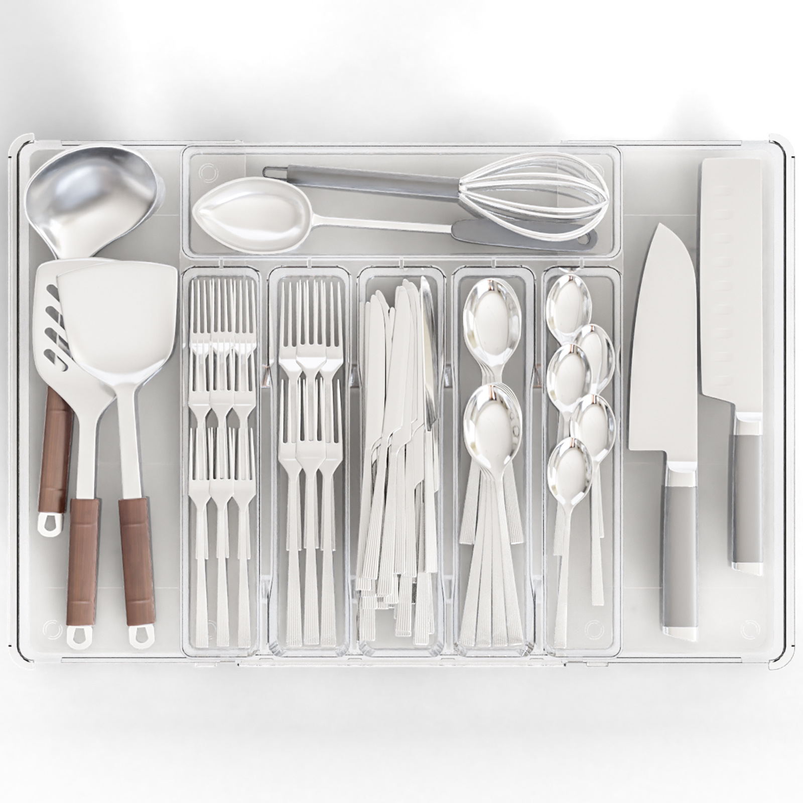 국경 투명 식기 주방 마감 상자 서랍 텔레스코픽 실버 웨어 다기능 저장 상자 나이프와 포크 파티션 텔레스코픽 상자스토어 가기