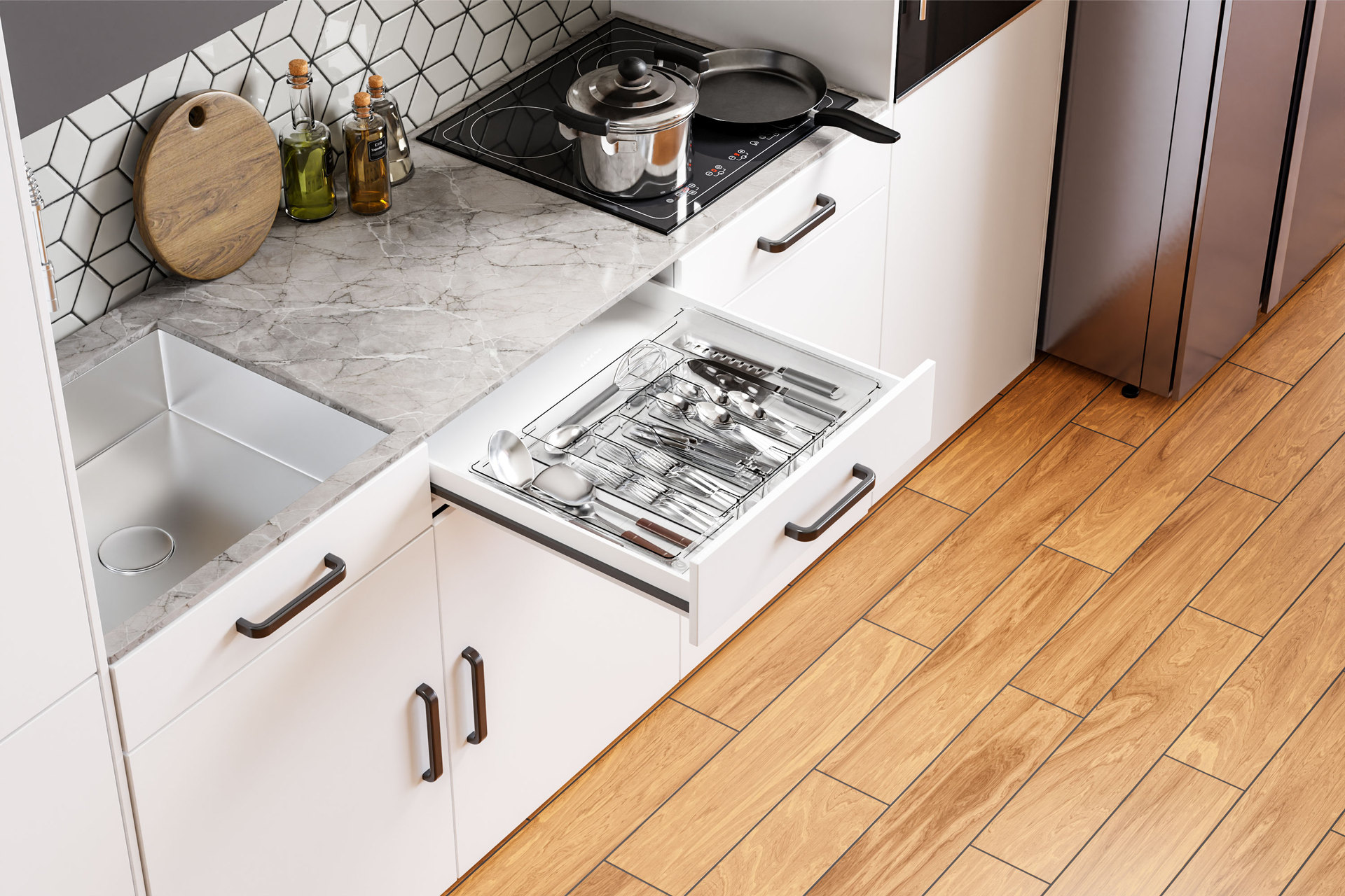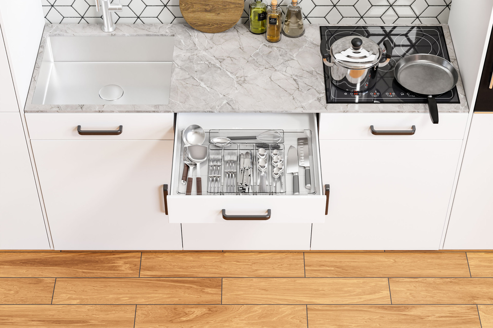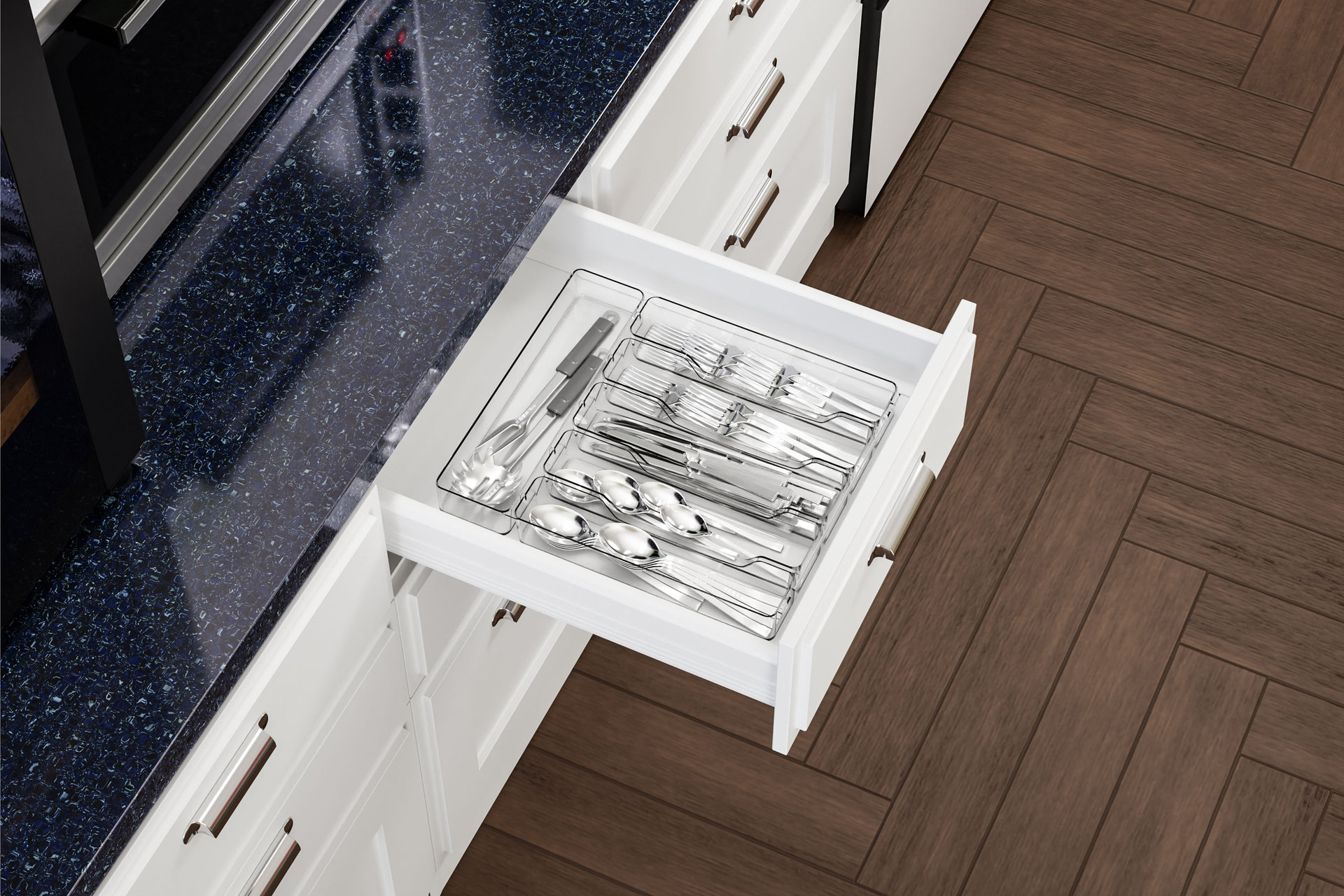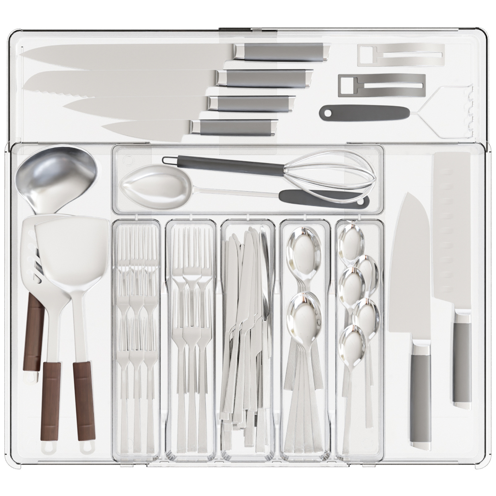 국경 투명 식기 주방 마감 상자 서랍 텔레스코픽 실버 웨어 다기능 저장 상자 나이프와 포크 파티션 텔레스코픽 상자스토어 가기