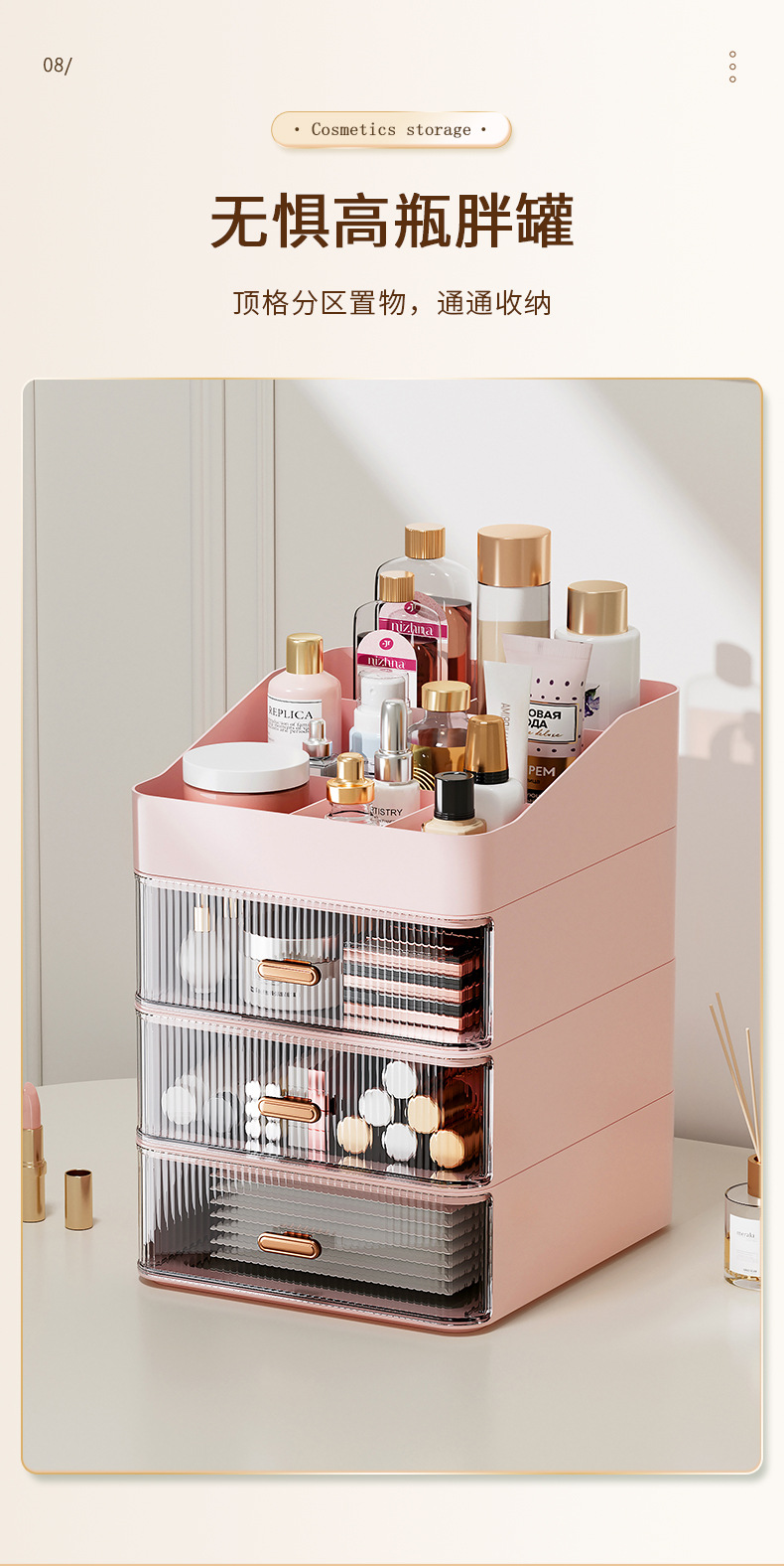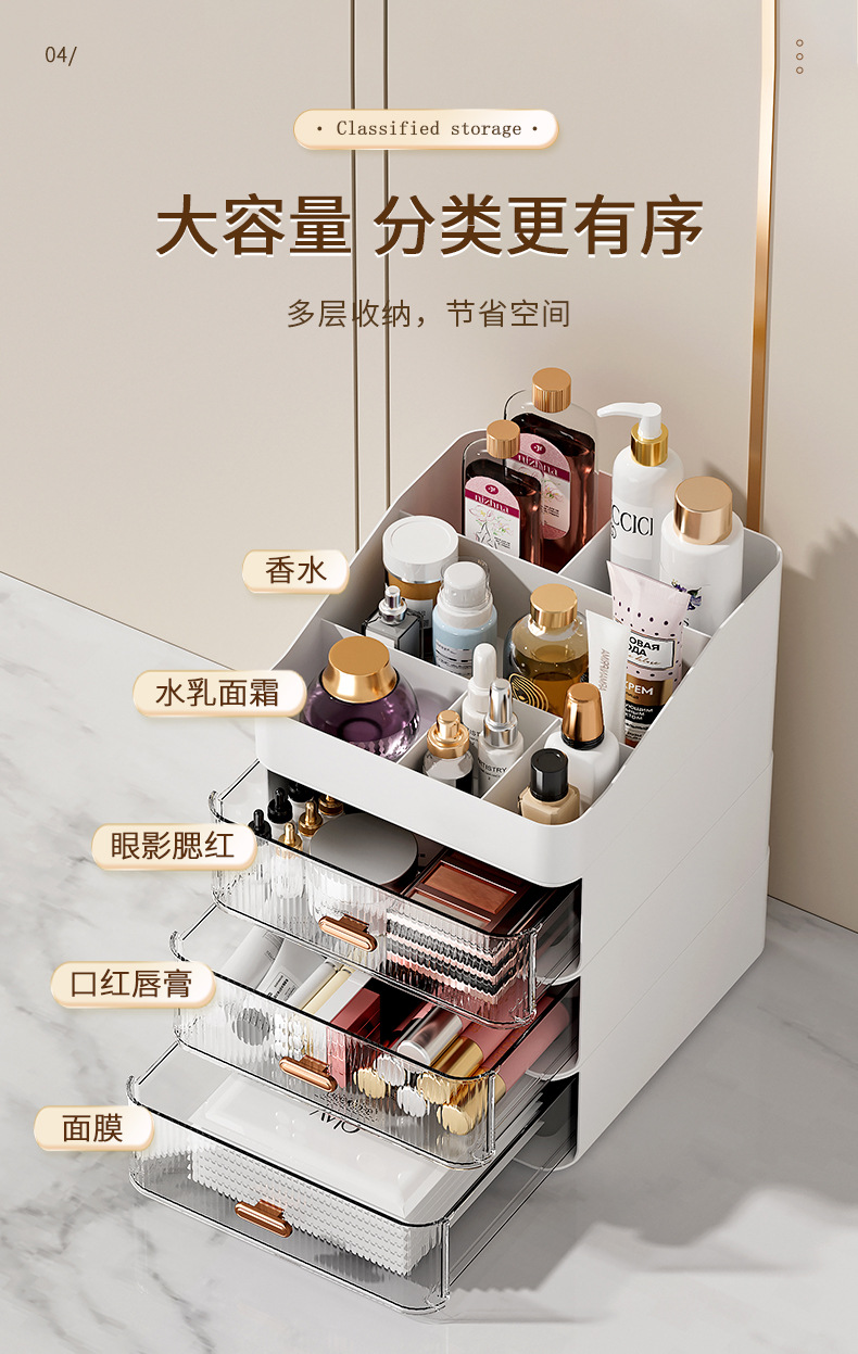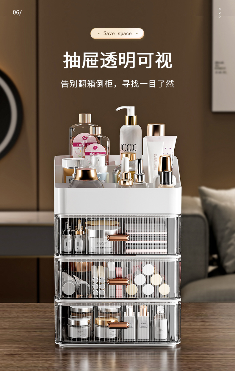 데스크탑 오버레이 스토리지 박스 서랍 화장품 타이디 박스 투명 라이트 럭셔리 크리에이티브 데스크 스토리지 랙
