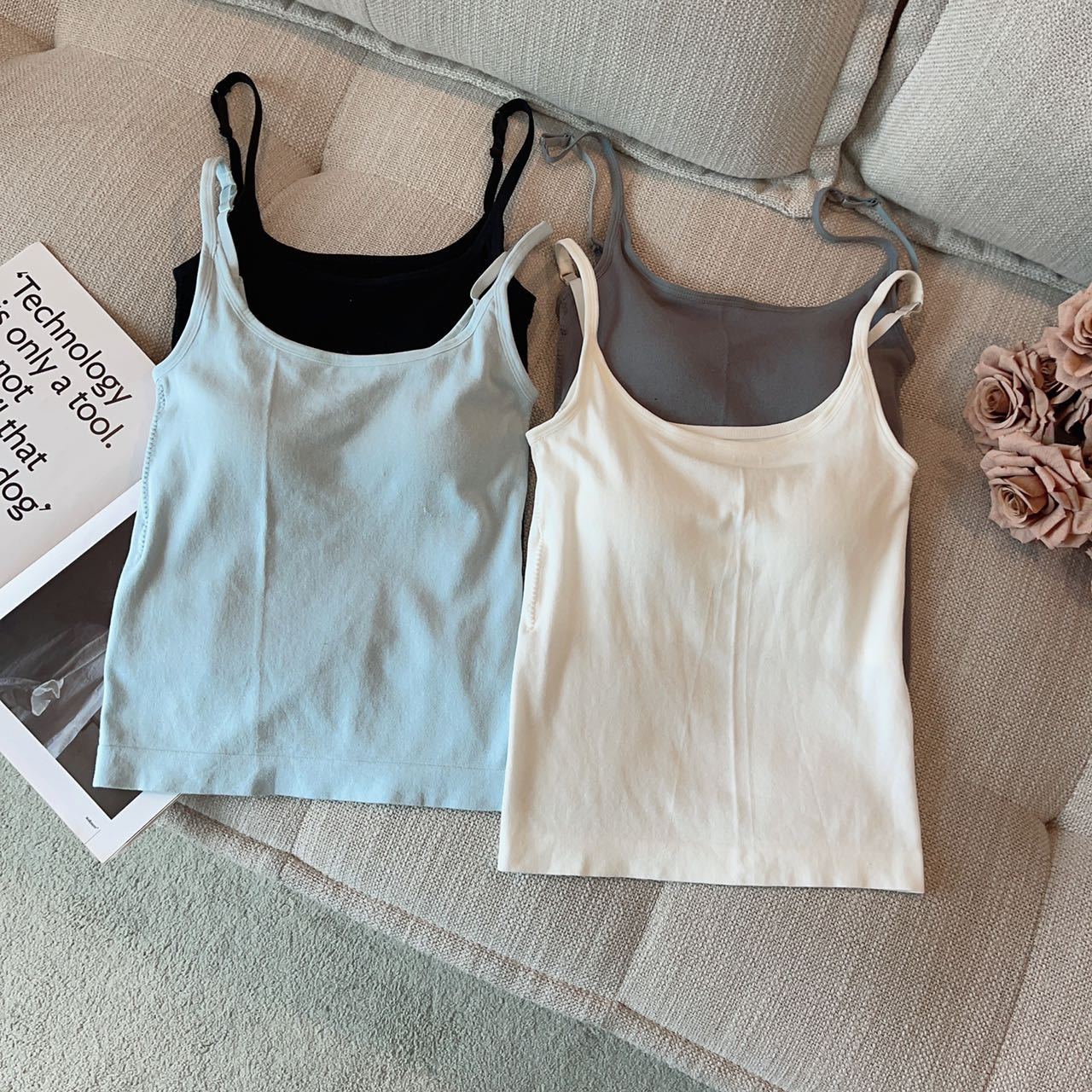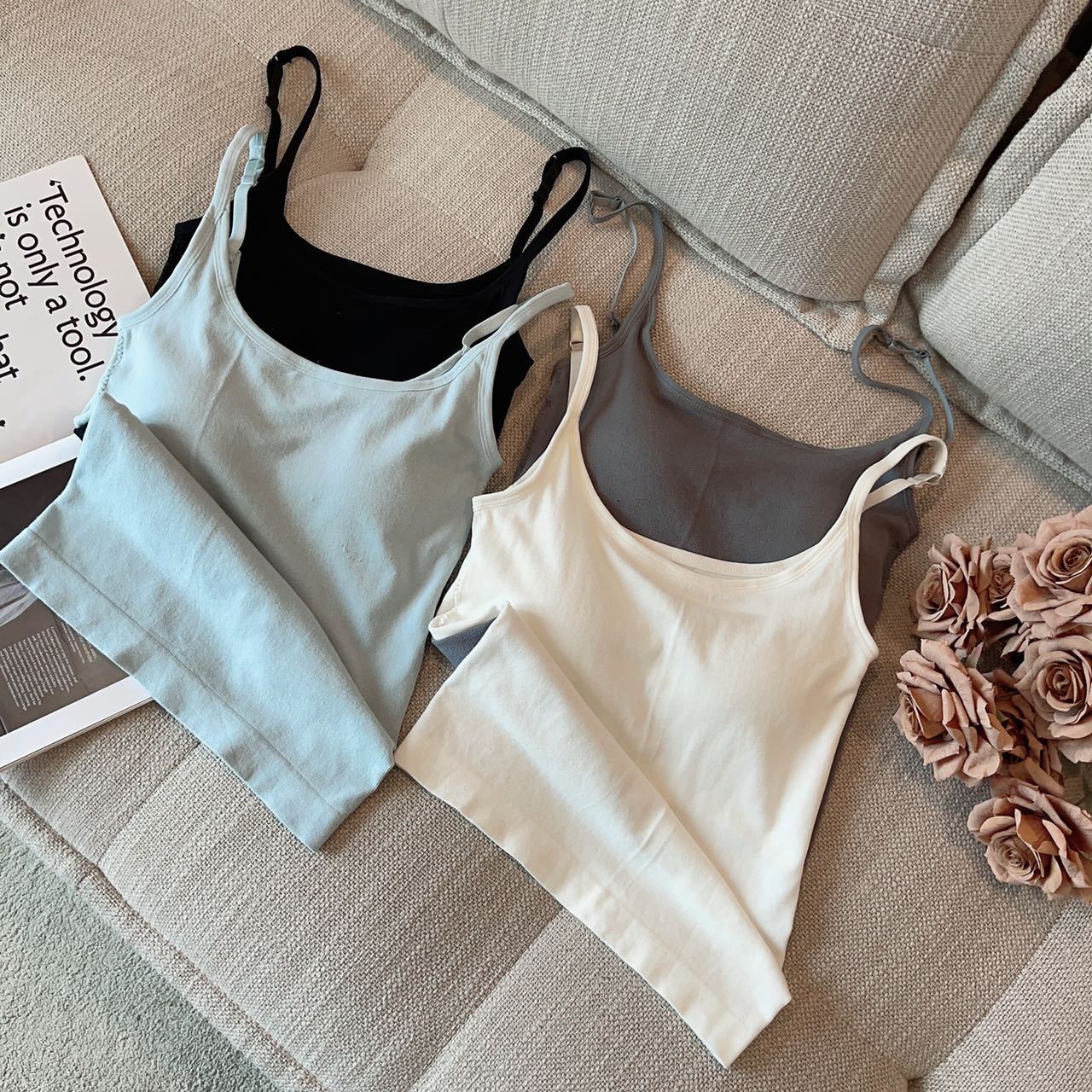 독특하고 세련된 얇은 스포츠 작은 슬링 여성 여름 아름다운 뒤 조끼 브래지어 원피스 소매 탑 가슴 패드스토어 가기