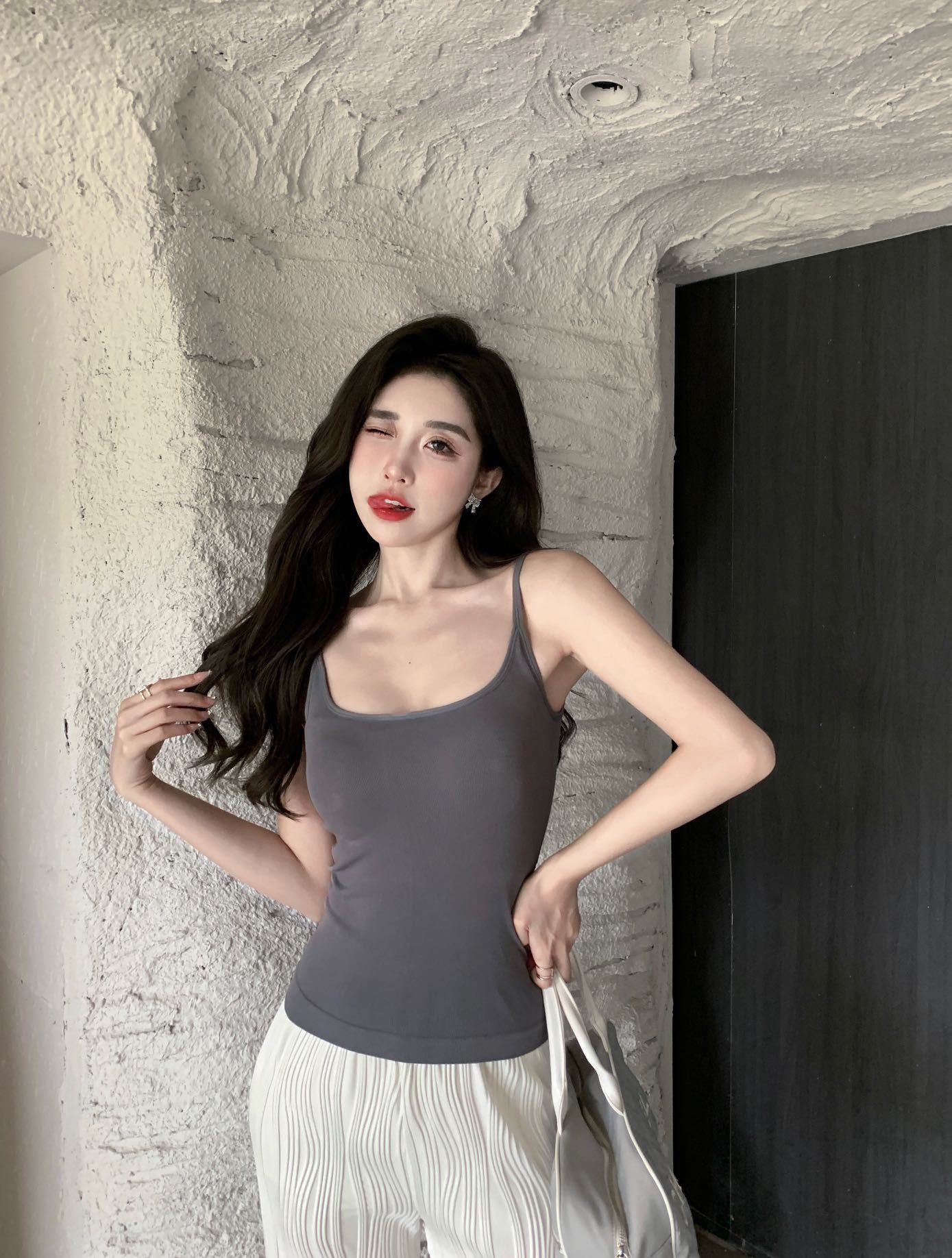 독특하고 세련된 얇은 스포츠 작은 슬링 여성 여름 아름다운 뒤 조끼 브래지어 원피스 소매 탑 가슴 패드