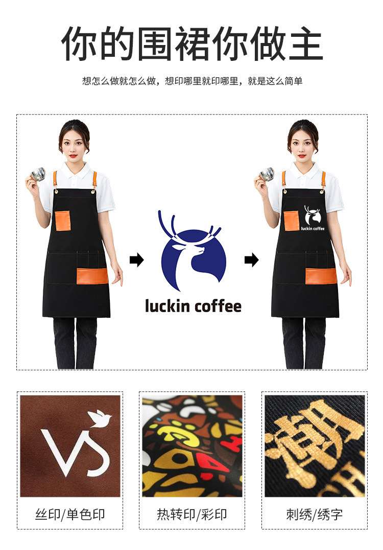 남성 및 여성 인쇄 앞치마 케이터링 카페 밀크 티 샵 작업복 작업복 웨이터 캔버스 방수스토어 가기