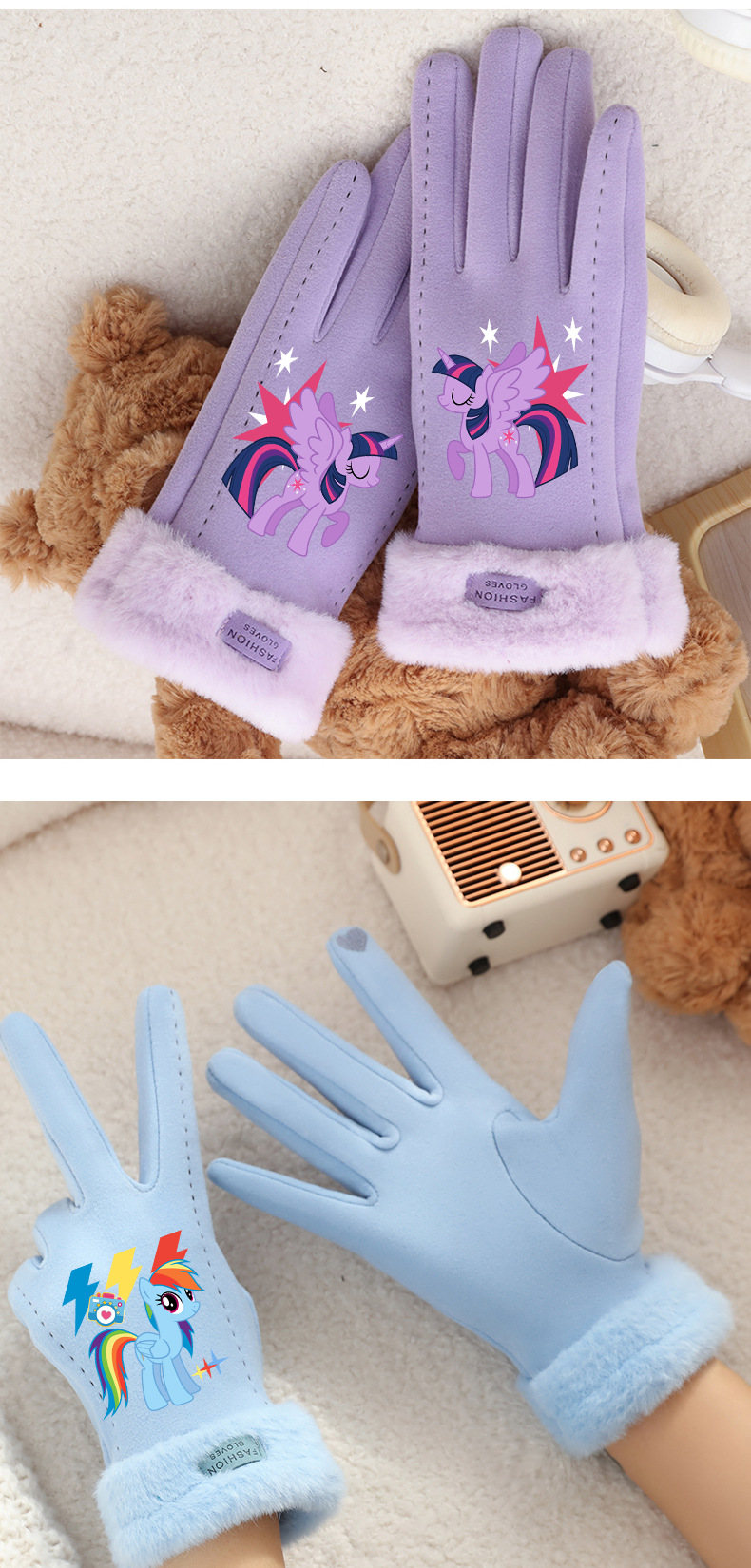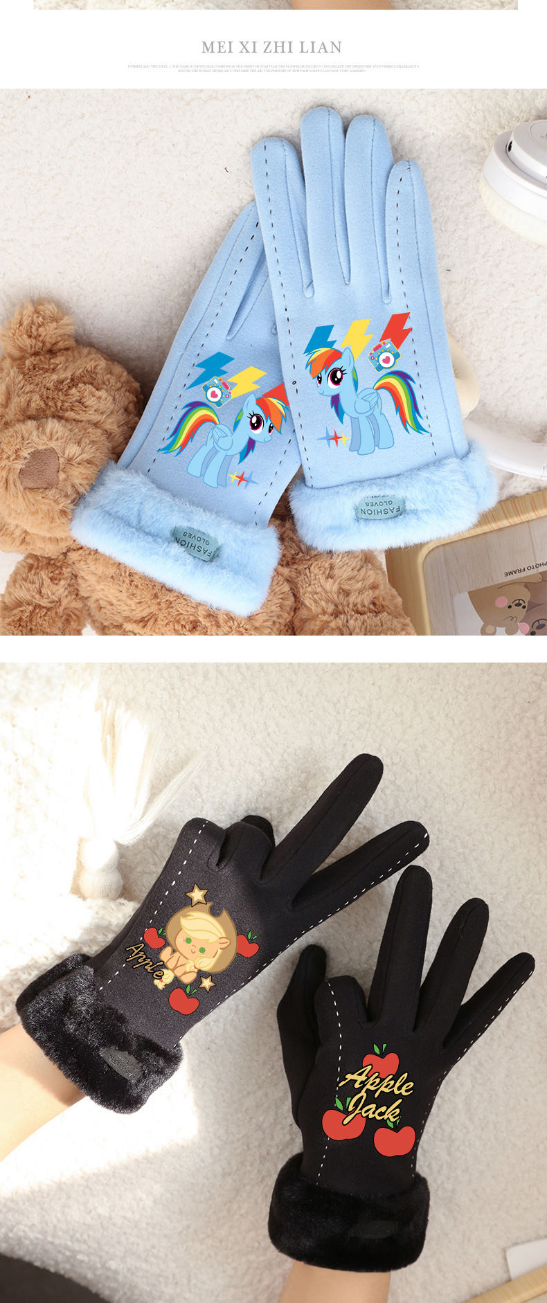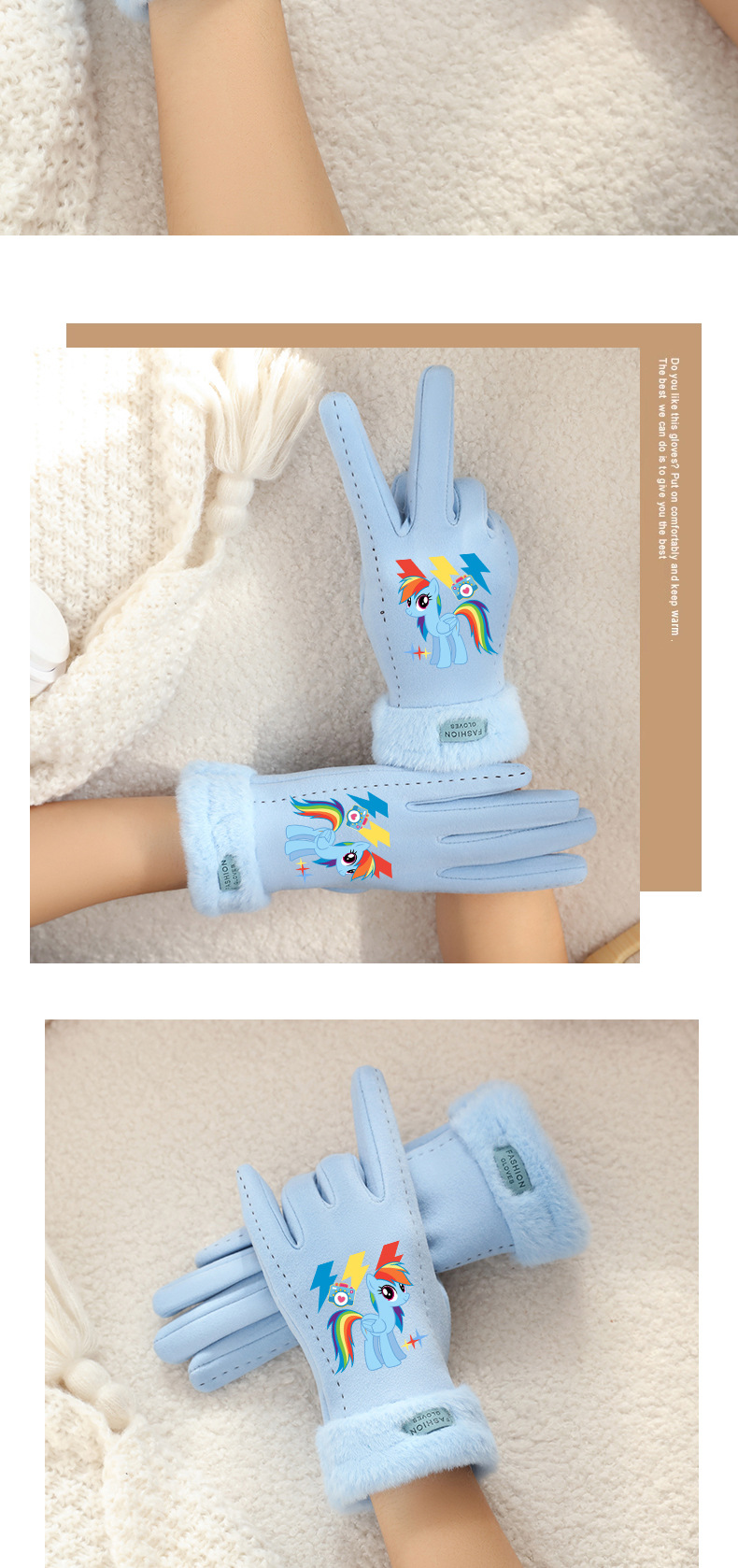 Biqi Ziyue 장갑 귀여운 따뜻한 가을과 겨울 터치 스크린 야외 두꺼운 벨벳 장갑 승마 어린이 장갑스토어 가기