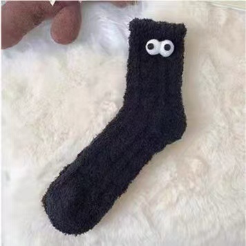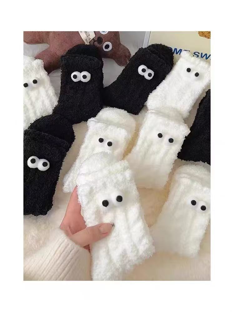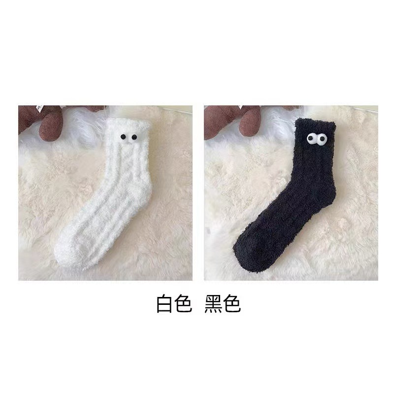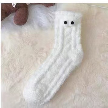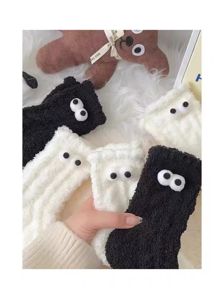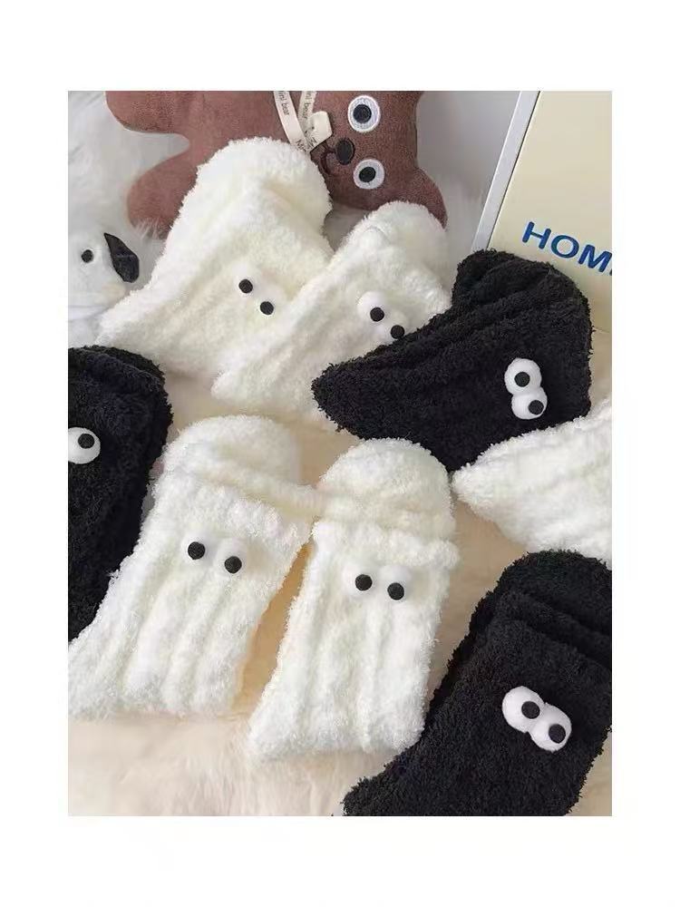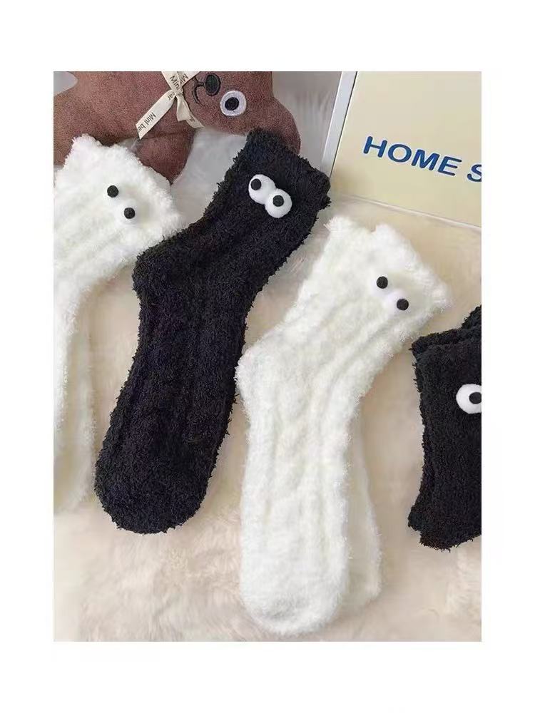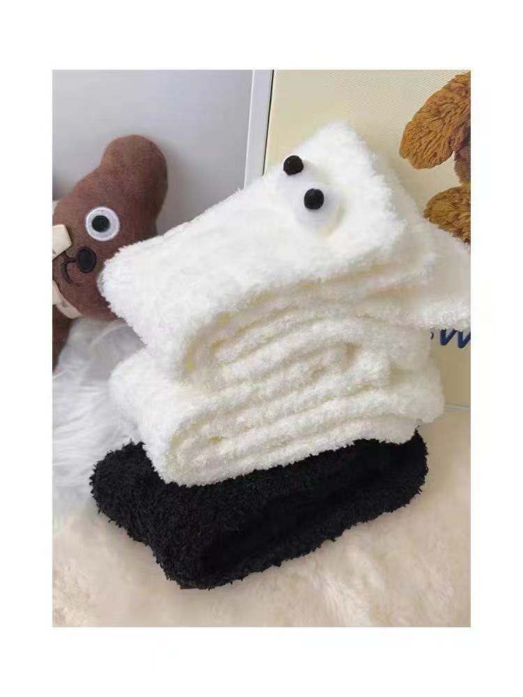 흑백 귀여운 기모 패딩 모피 수면 양말 겨울 봉제 양말 따뜻한 산호 양털 바닥 양말 어린이스토어 가기