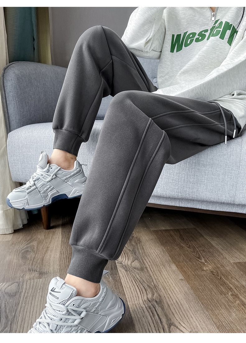 스포츠 바지 여성의 가을과 겨울 캐주얼 따뜻한 방풍 바지 새로운 기모 두꺼운 발가락 가드 바지