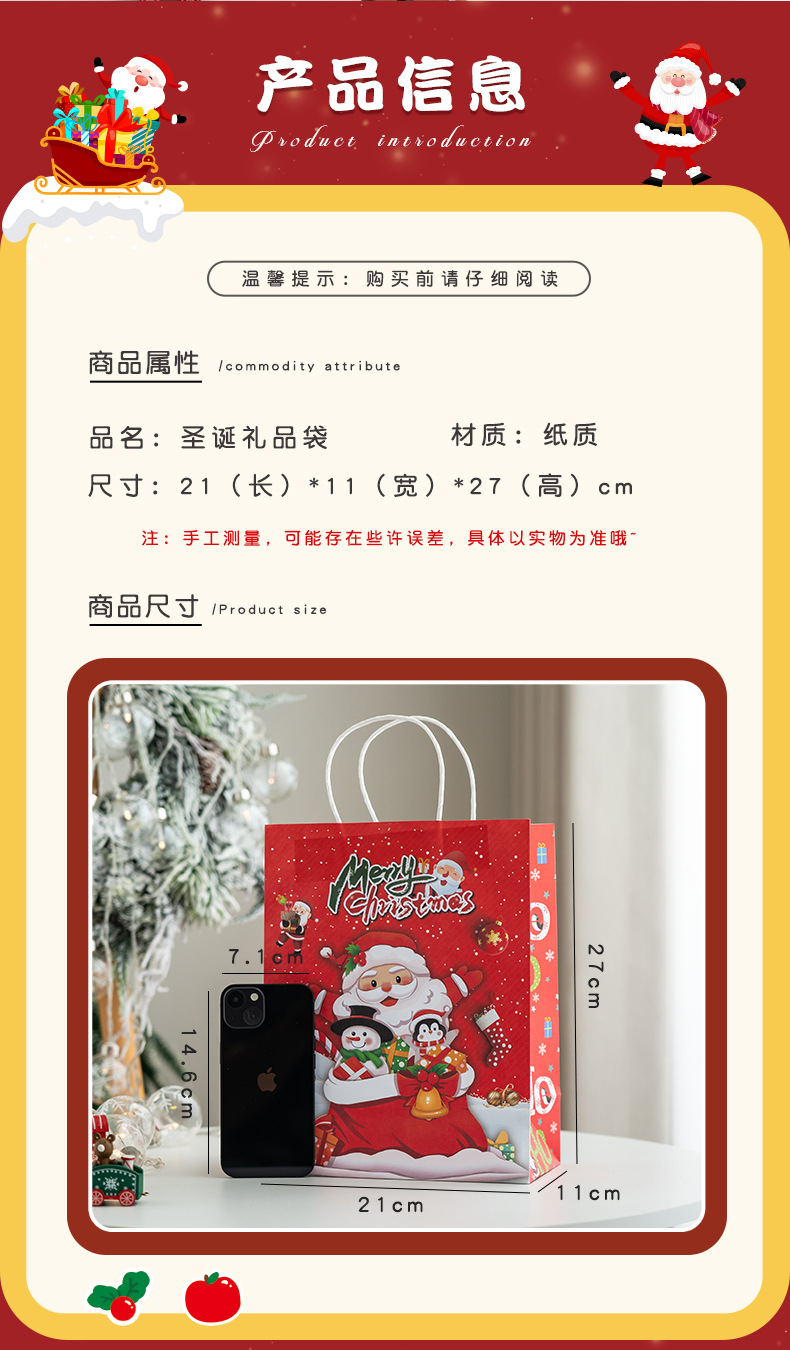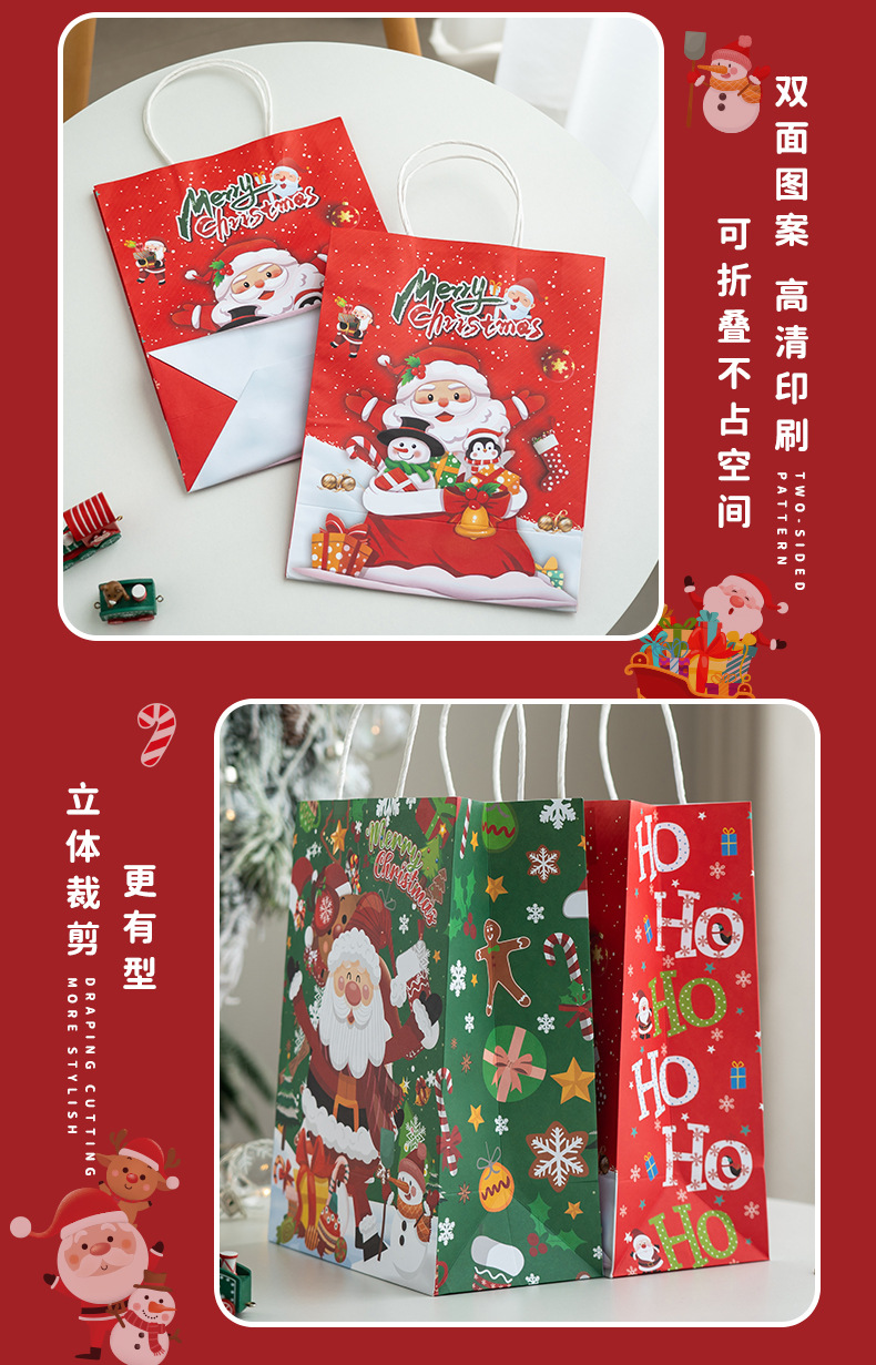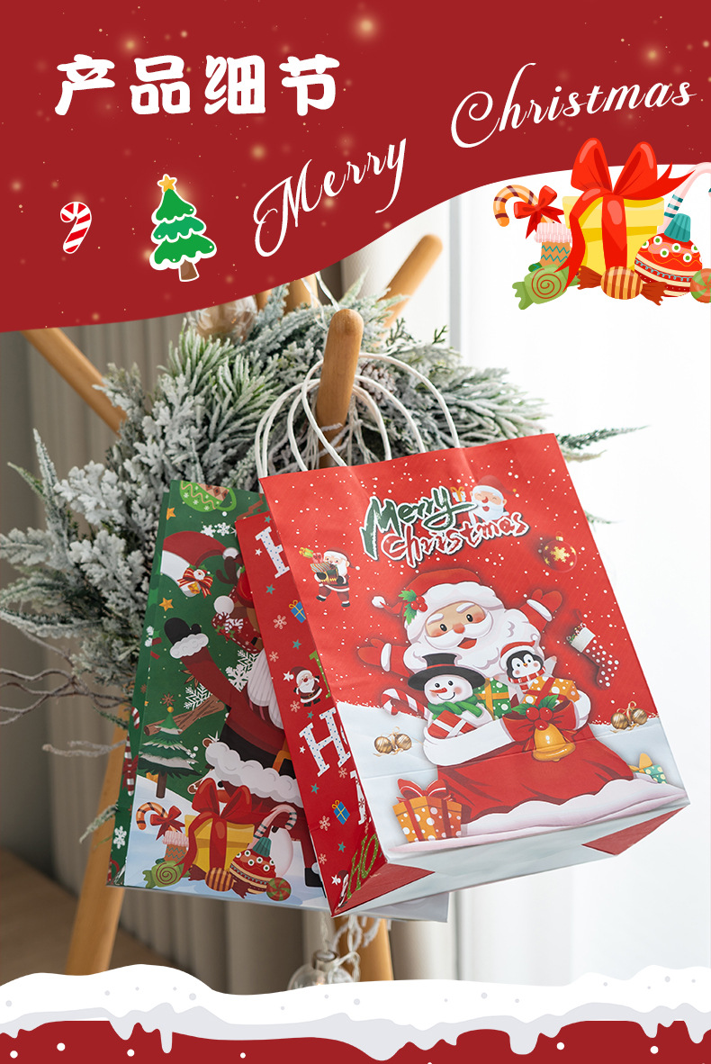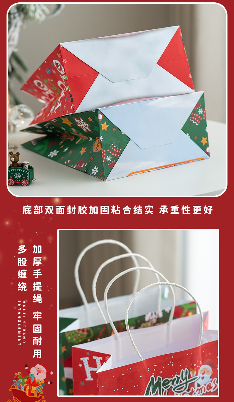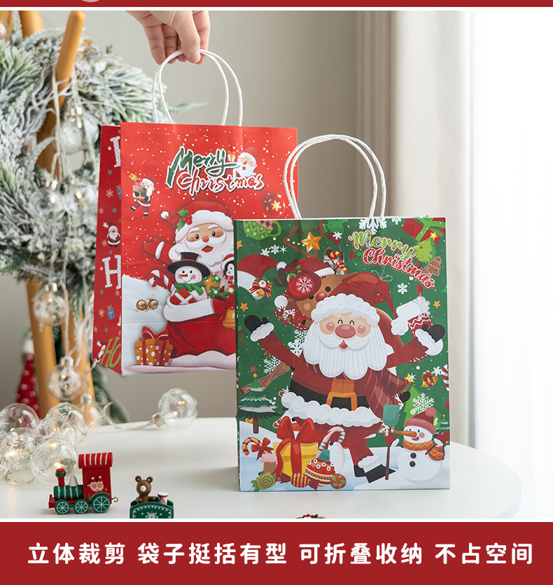 새로운 크리스마스 휴대용 종이 가방 엘크 눈송이 크리스마스 트리 크리스마스 이브 선물 귀여운 선물 가방 선물 종이 가방