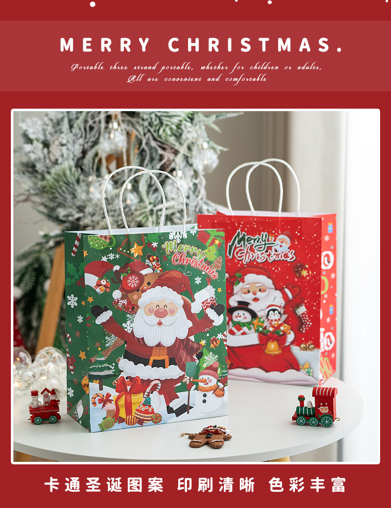 새로운 크리스마스 휴대용 종이 가방 엘크 눈송이 크리스마스 트리 크리스마스 이브 선물 귀여운 선물 가방 선물 종이 가방스토어 가기