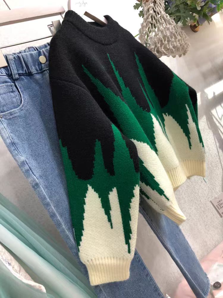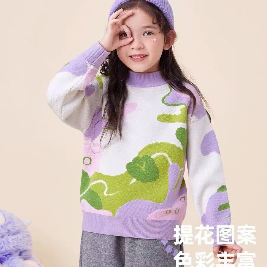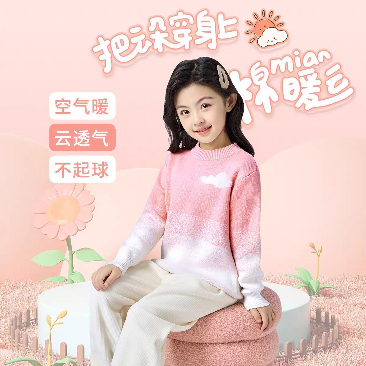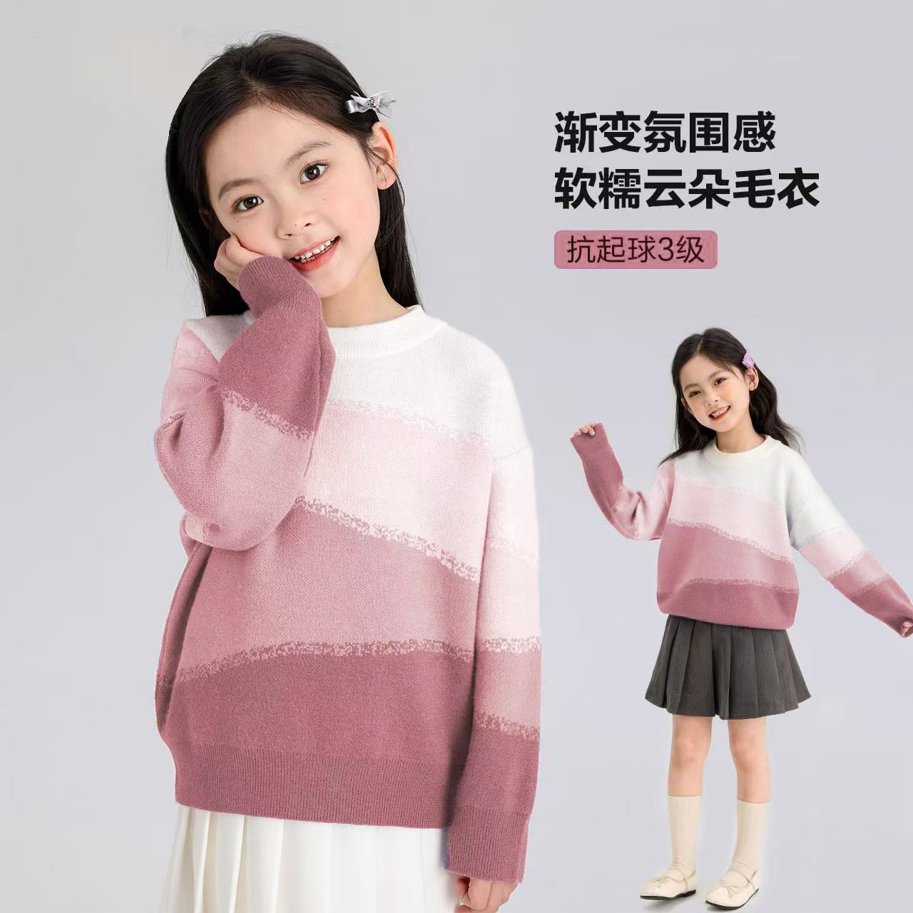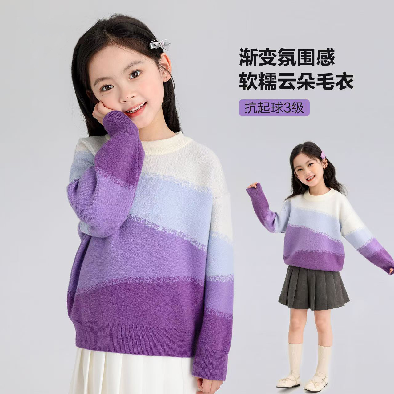 소녀 스웨터 가을과 겨울베이스 셔츠 그라디언트 대비 구름 스웨터 니트웨어 아기 소녀 귀여운 공주 스타일 탑스토어 가기