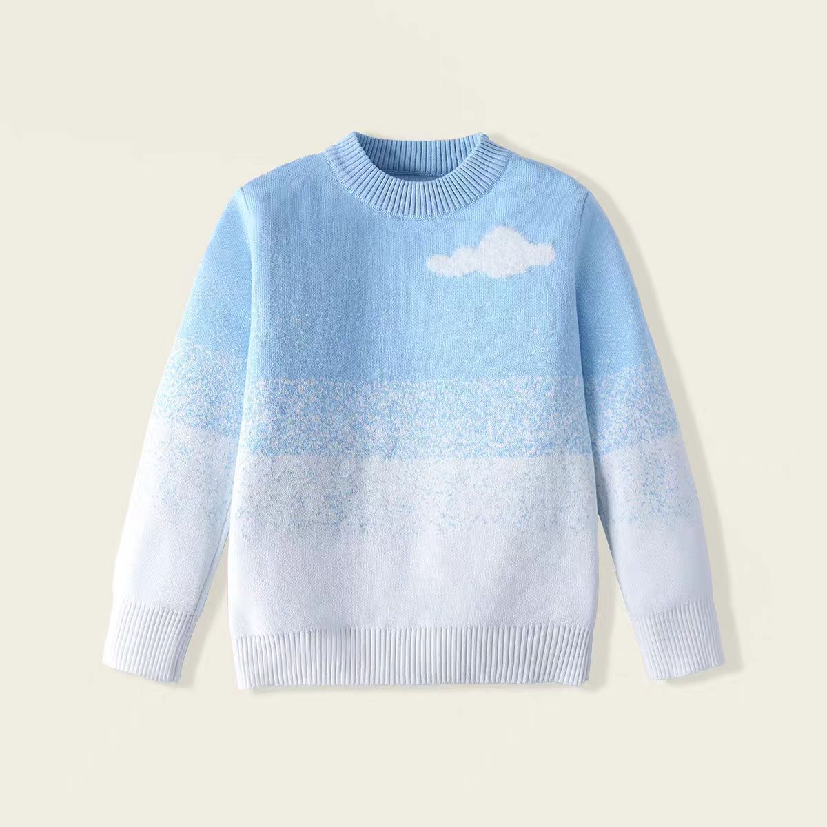 소녀 스웨터 가을과 겨울베이스 셔츠 그라디언트 대비 구름 스웨터 니트웨어 아기 소녀 귀여운 공주 스타일 탑