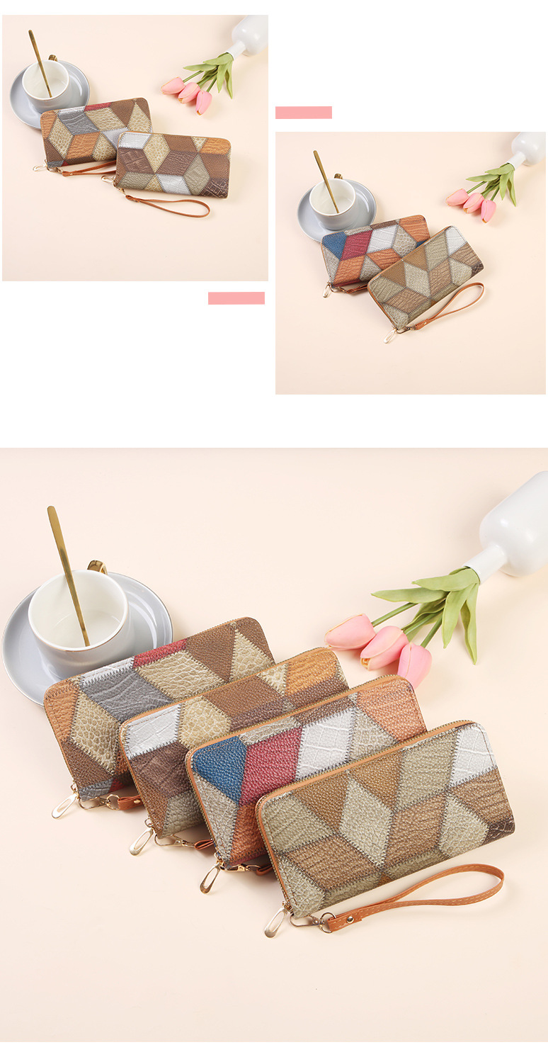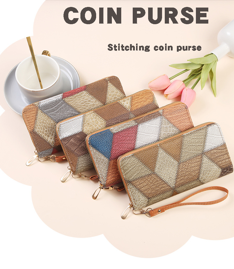 2025TEMU 크로스보더 여성 가방 도매 한국 스타일 배색 중간 길이 지갑 동전 지갑 레트로 2025 신상