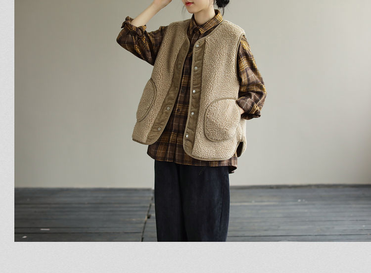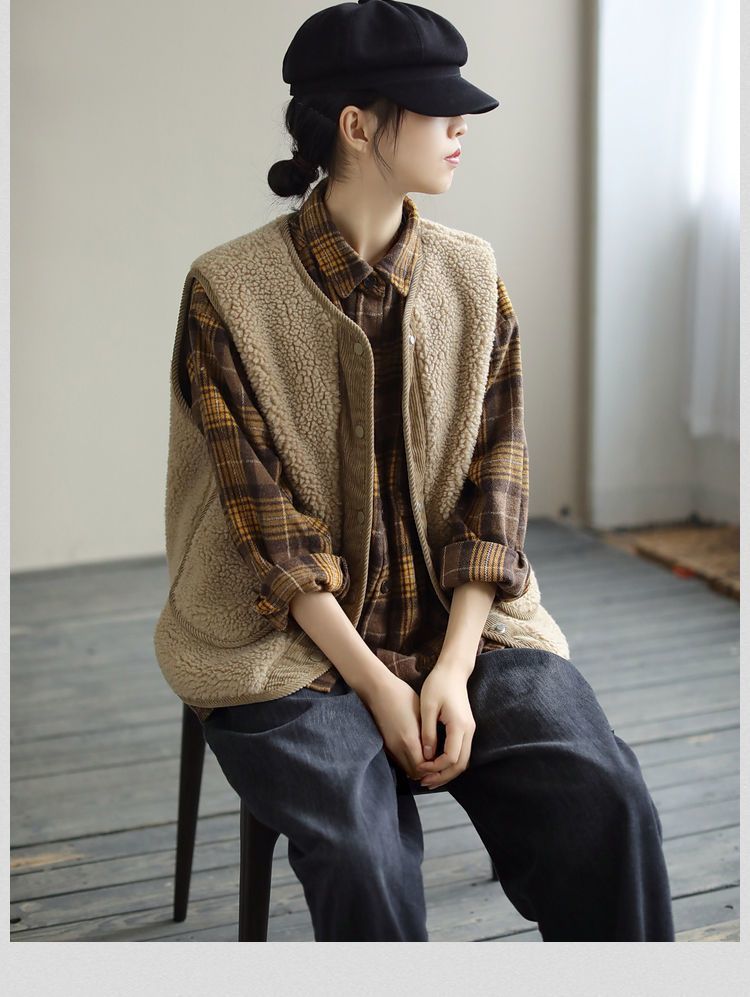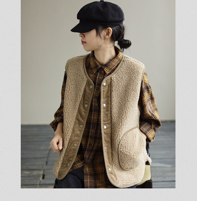 양면 양모 조끼 여성의 가을 봄과 겨울 새로운 예술적 느슨한 민소매 코듀로이 포워드 및 리버스 재킷스토어 가기