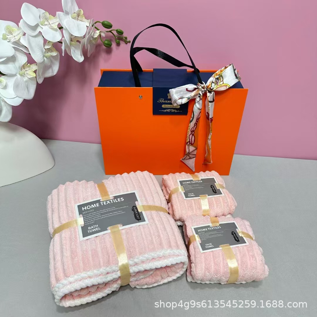헤르메스 대나무 패턴 목욕 타월 3 조각 산호 양털 수건 목욕 타월 세트 흡수성 파인애플 격자 무늬
