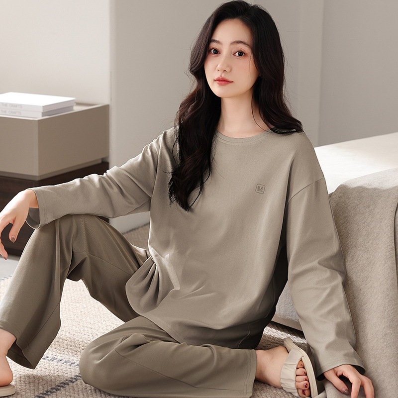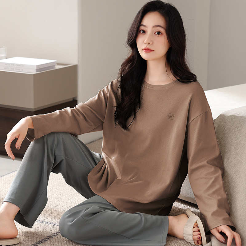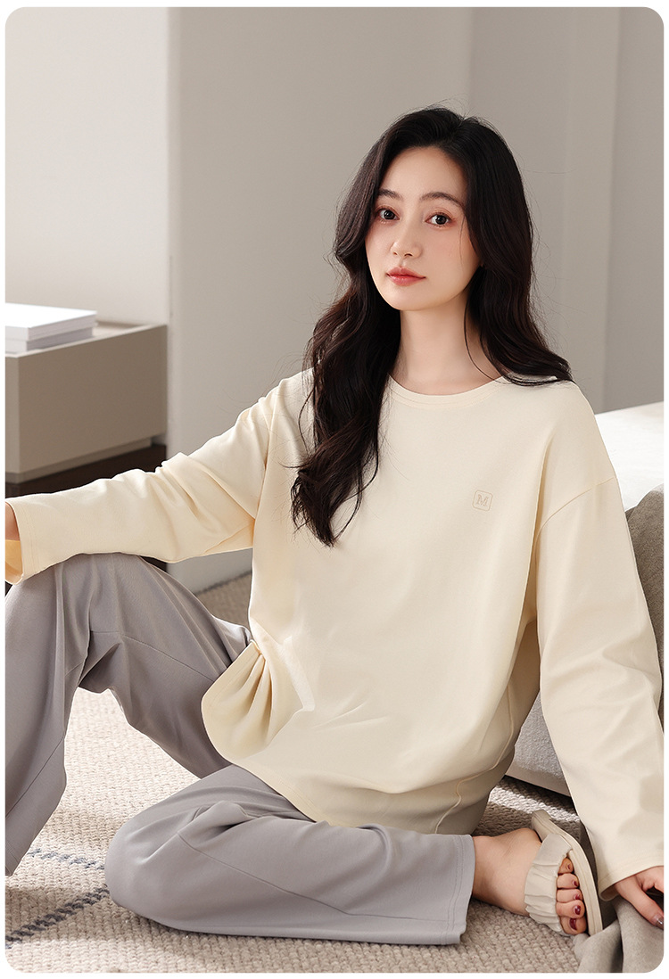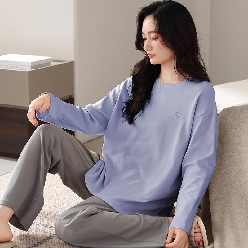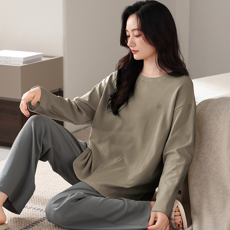커플 잠옷 여성의 봄과 가을 면화 긴팔 바지 크루 넥 풀오버 솔리드 컬러 남성 캐주얼 플러스 사이즈 홈 의류 세트스토어 가기