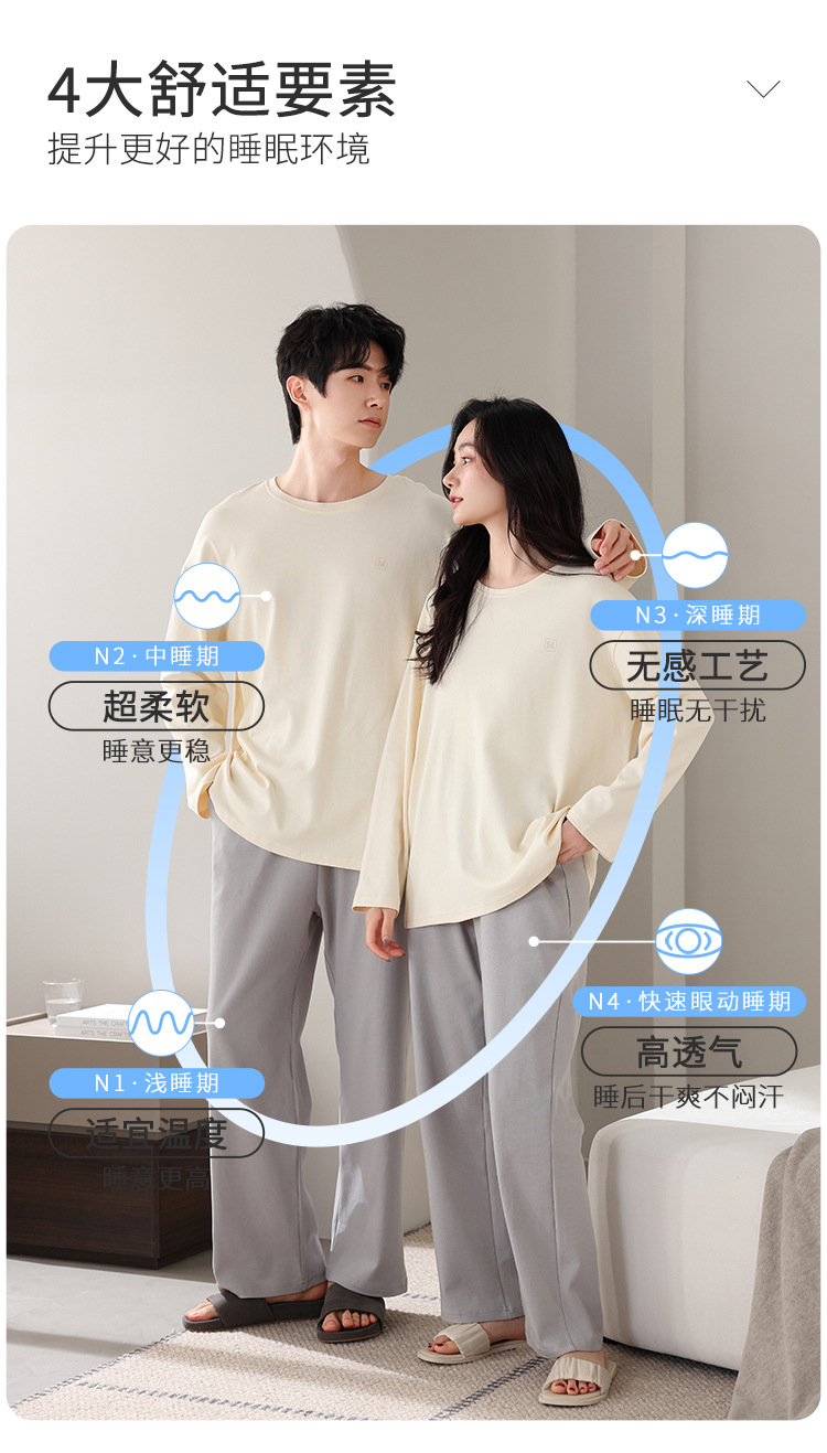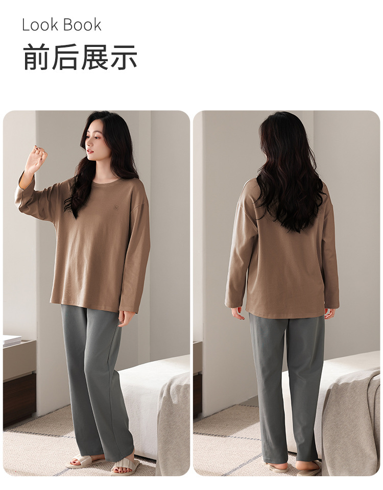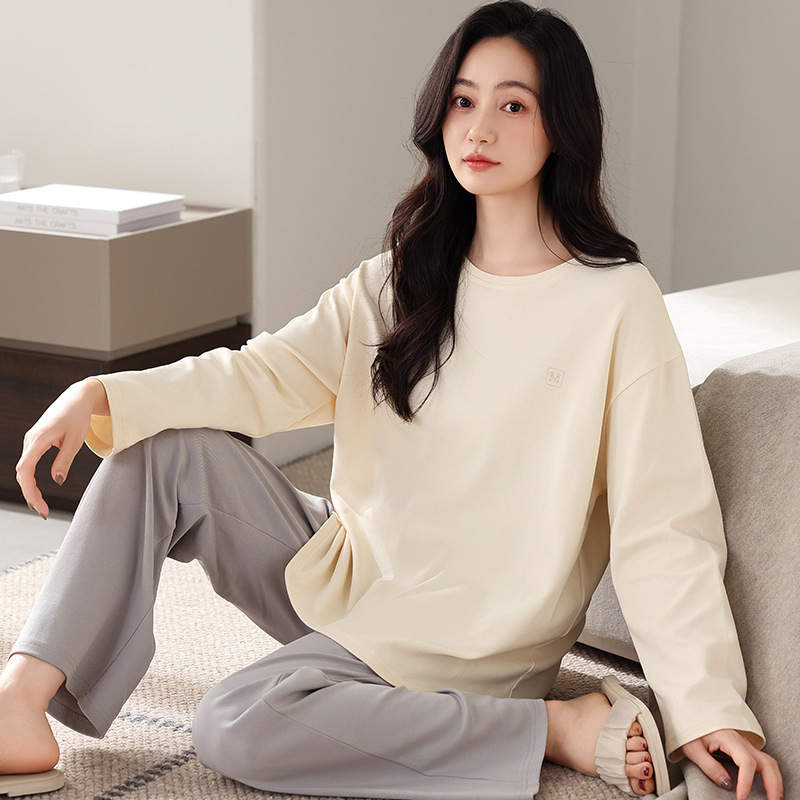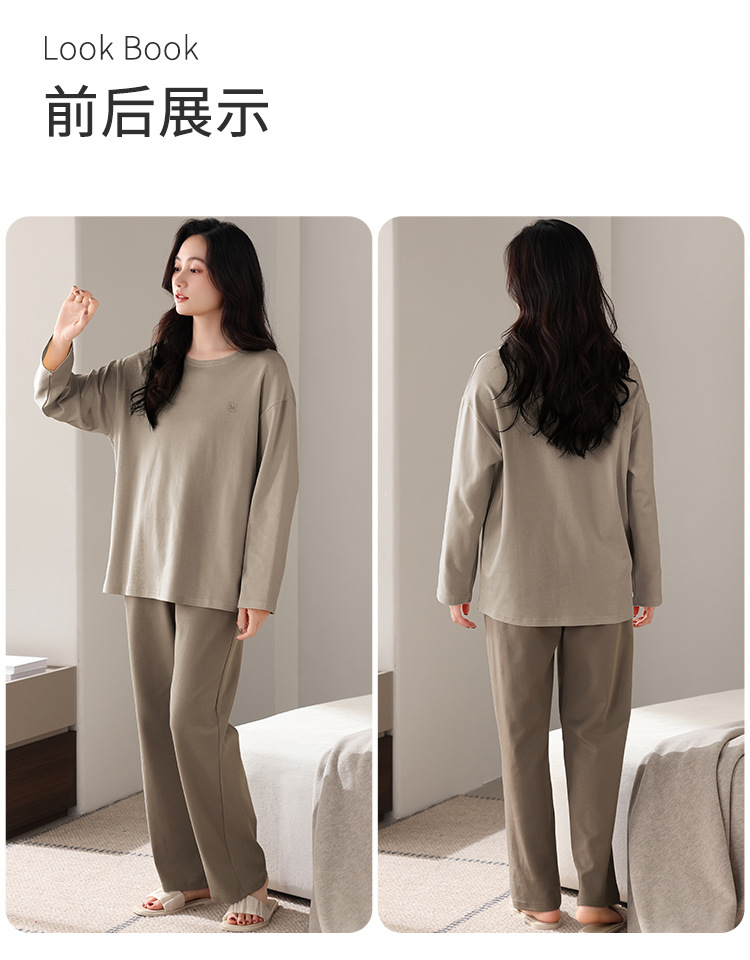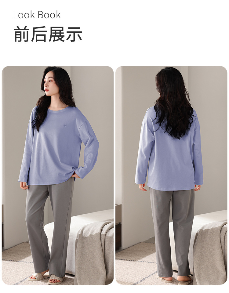 커플 잠옷 여성의 봄과 가을 면화 긴팔 바지 크루 넥 풀오버 솔리드 컬러 남성 캐주얼 플러스 사이즈 홈 의류 세트스토어 가기