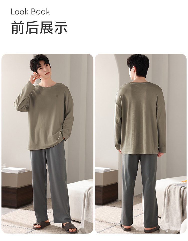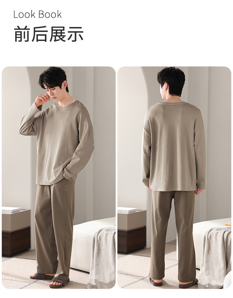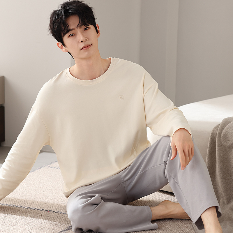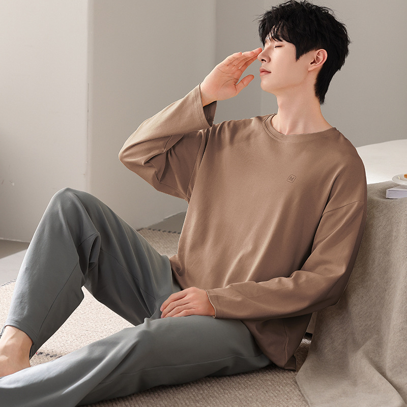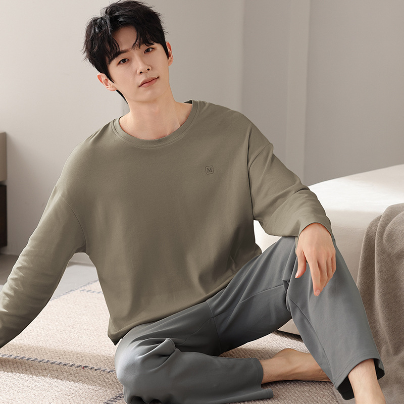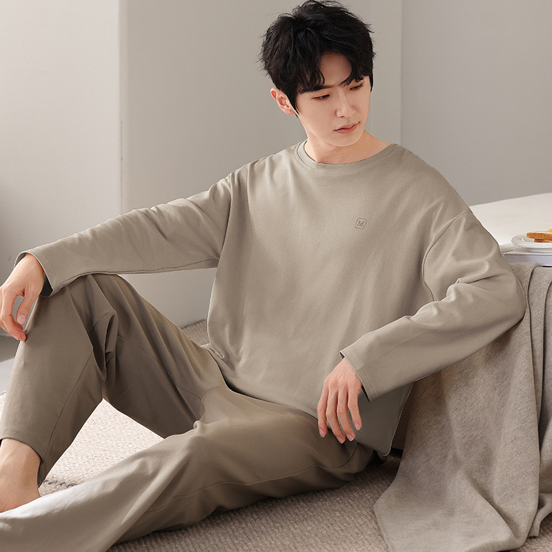 커플 잠옷 여성의 봄과 가을 면화 긴팔 바지 크루 넥 풀오버 솔리드 컬러 남성 캐주얼 플러스 사이즈 홈 의류 세트
