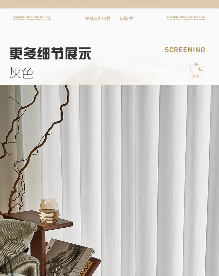 팬텀 거즈 두꺼운 거즈 커튼은 빛을 투과하고 불투명하며 거실, 발코니, 침실, 자외선 차단 및 단열, Shaoxing Keqiao 커튼 및 창 스크린스토어 가기