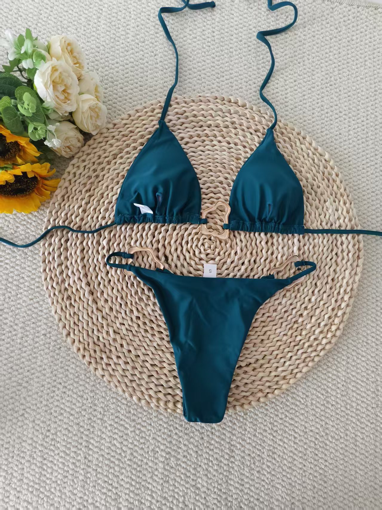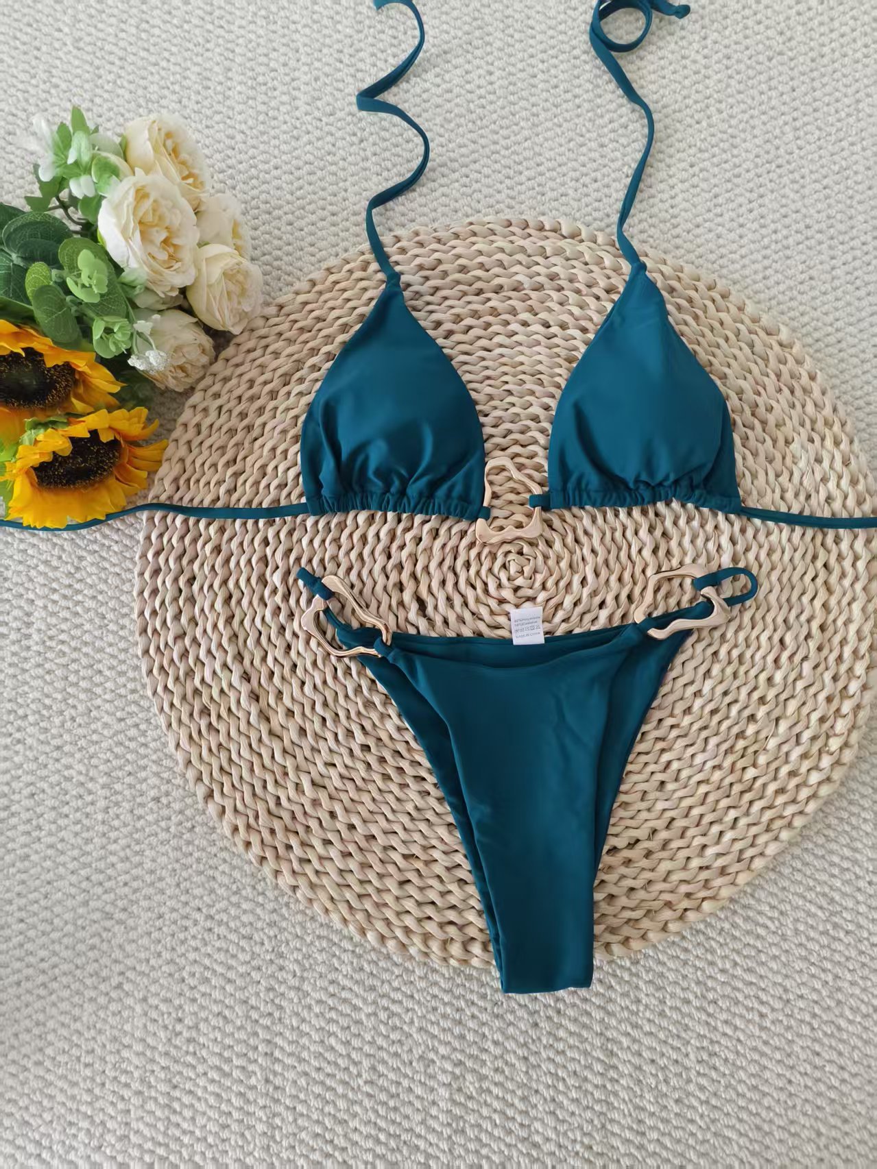 2024 새로운 지니 비키니 국경 유럽 및 미국 섹시한 스트랩 분할 세트 수영복 여성 비키니 수영복