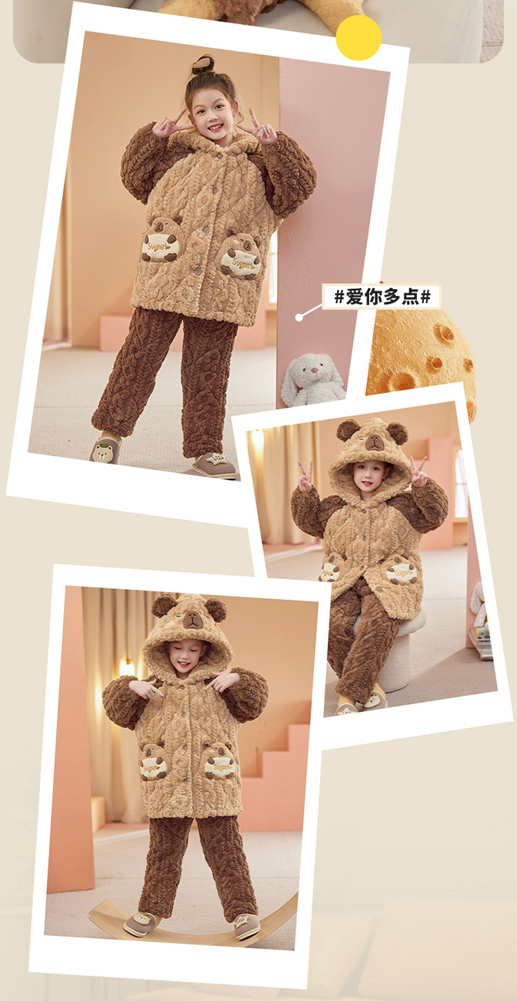만화 카드 피발라 소녀 3 층 퀼트 파자마 겨울 후드 기모 두꺼운 중대형 어린이 가정 옷 세트스토어 가기