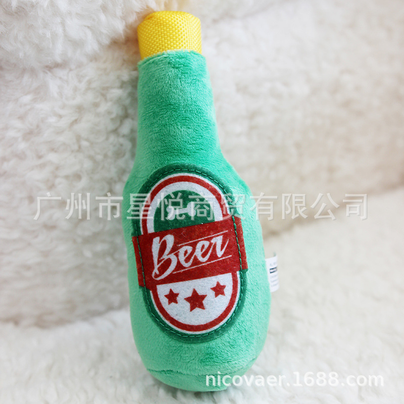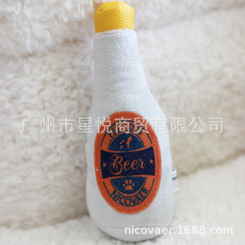 국경 간 소스 공장 애완 동물 테디 소형 및 중형 고양이 개 동반자 봉제 와인 병 사운드 장난감 인쇄