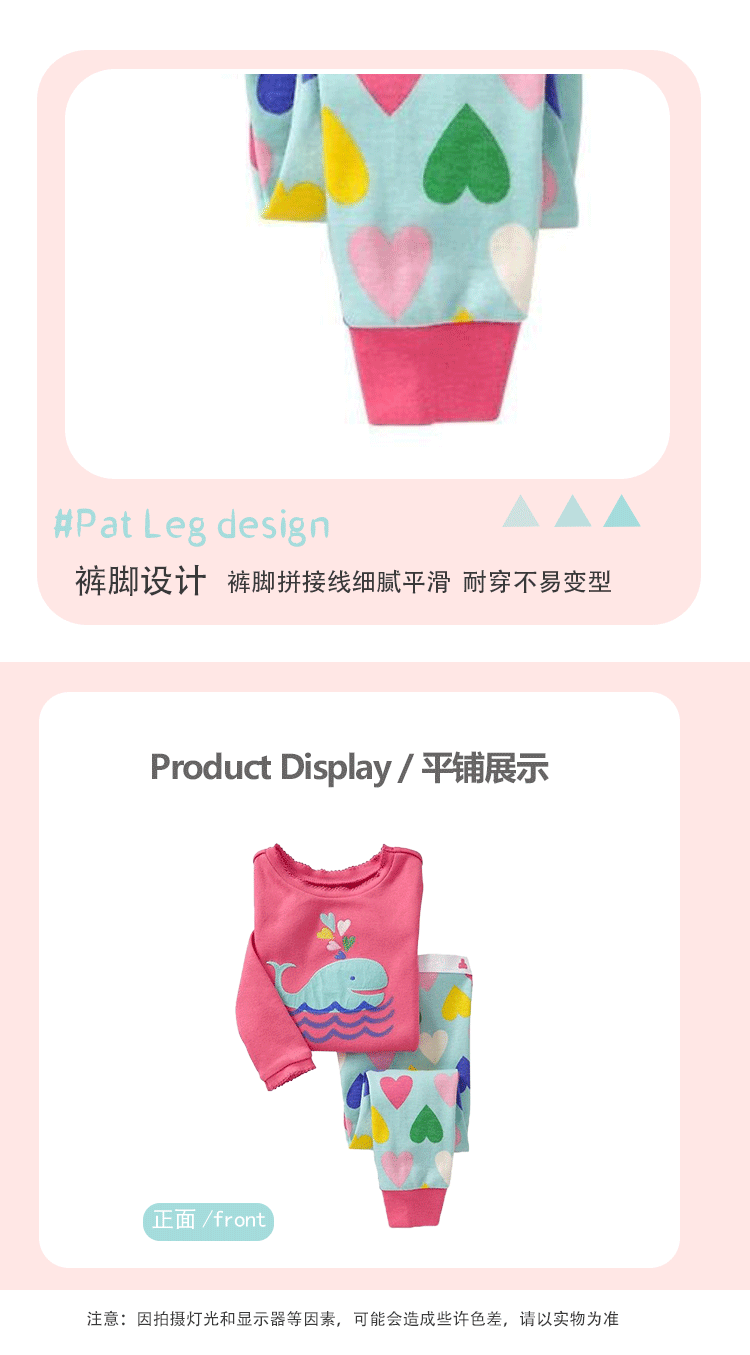 국경을 넘는 인기 아동복 여아 아기 만화 긴팔 고래 홈웨어 세트 잠옷 외출복으로도 착용 가능 편안함