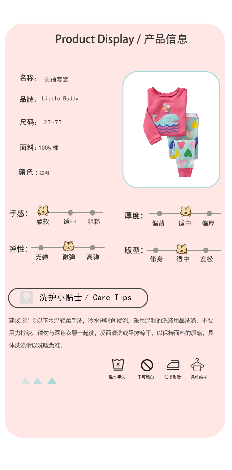 국경을 넘는 인기 아동복 여아 아기 만화 긴팔 고래 홈웨어 세트 잠옷 외출복으로도 착용 가능 편안함스토어 가기