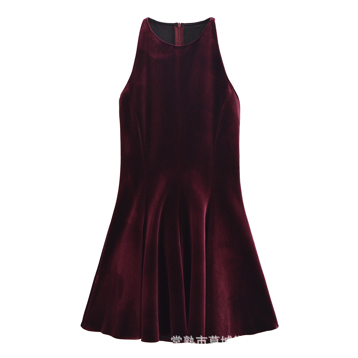 UC & ZA 크로스 국경 AliExpress 여성용 프렌치 슬림 핏 라운드 넥 웨이브 와이드 스윙 벨벳 원피스 4043185