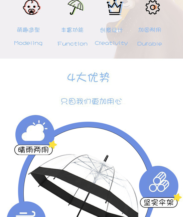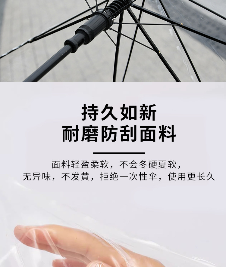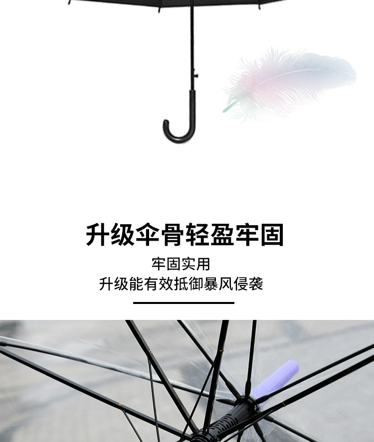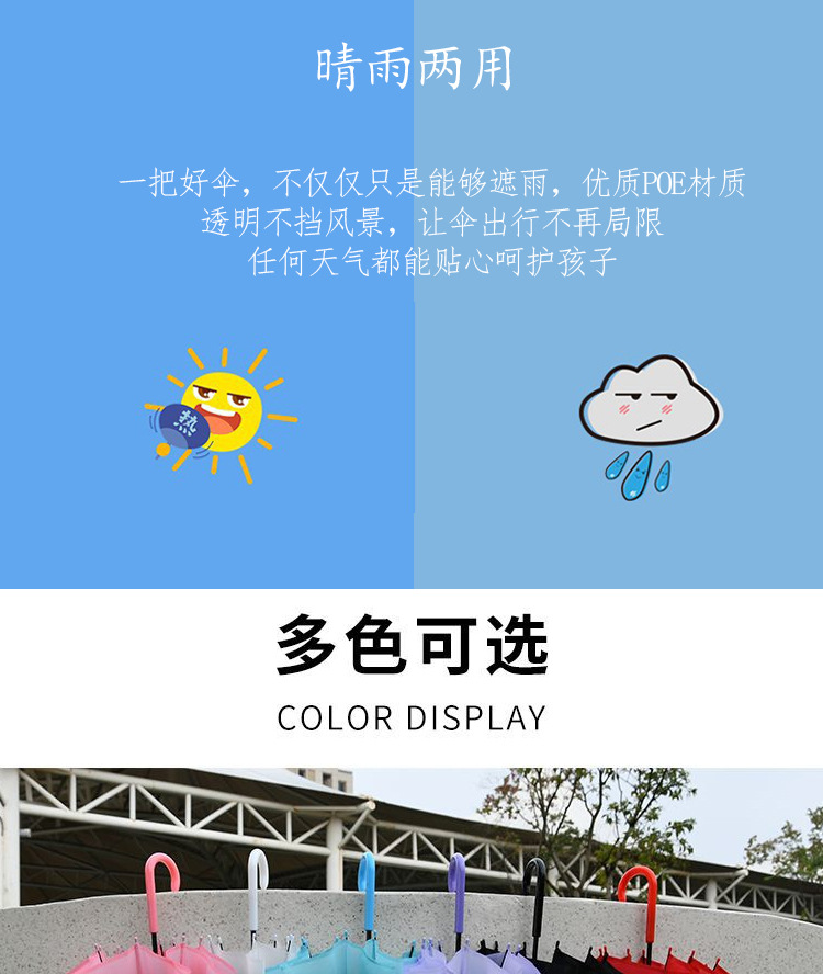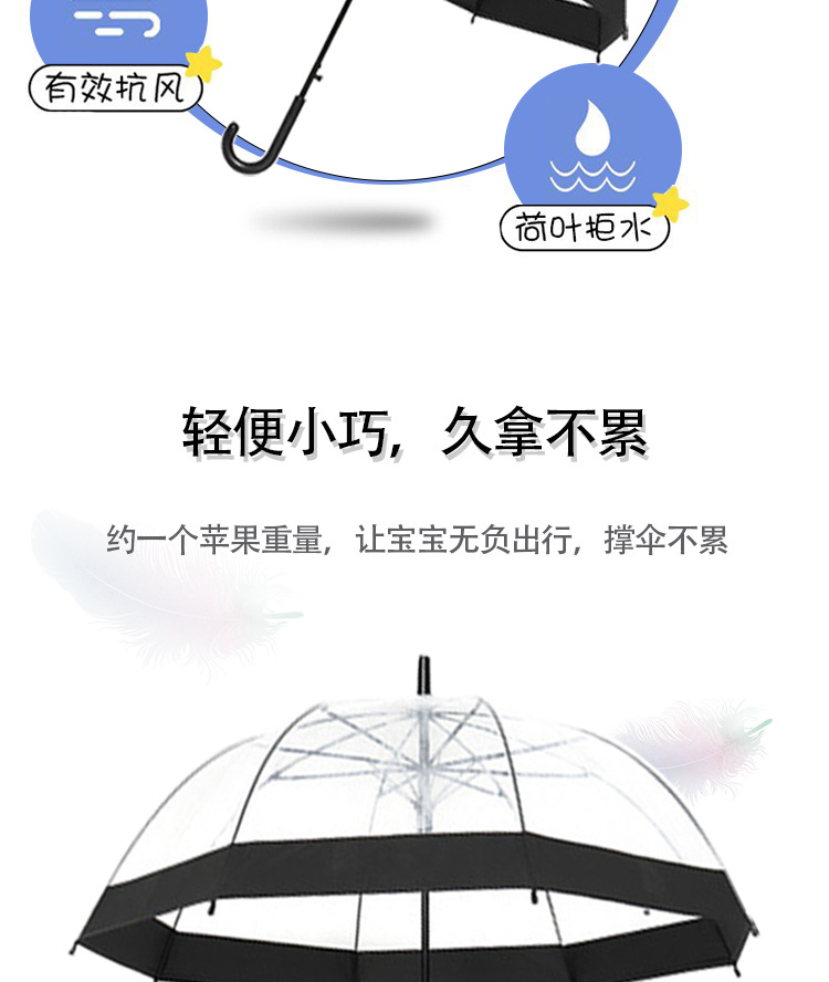 6~12세 초등학생을 위한 투명 어린이 우산, 반동 방지 안전 직선 장손 우산, 아폴로 아치형 우산