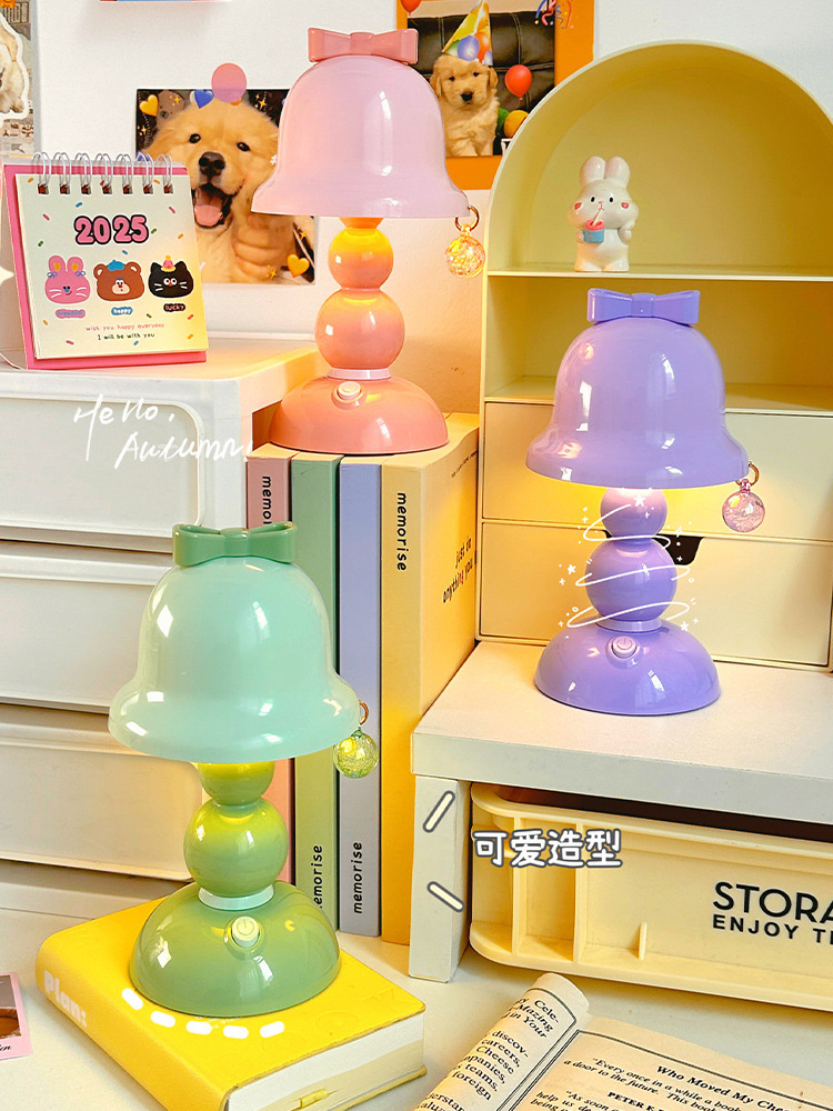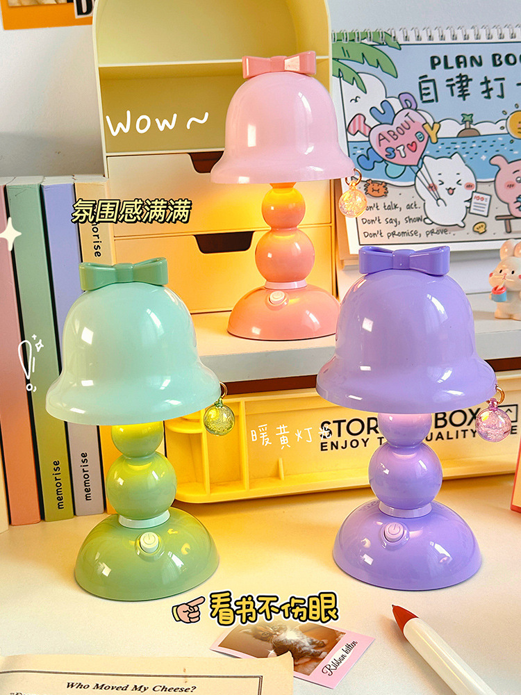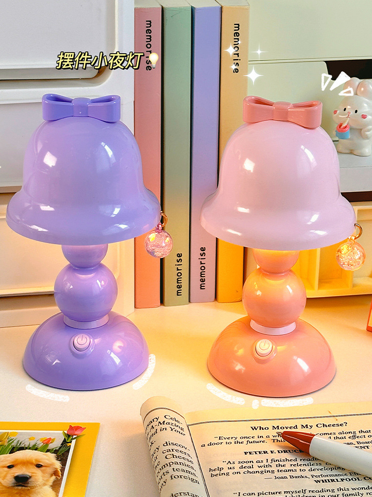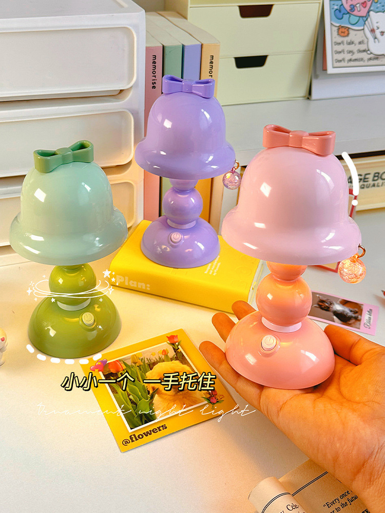 국경 간 선물 귀여운 활 나이트 라이트 미니 데스크탑 빛나는 장식 램프 학생 침실 LED 분위기 램프스토어 가기