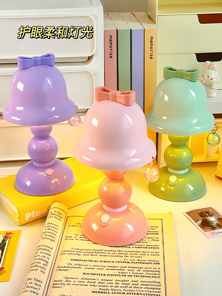 국경 간 선물 귀여운 활 나이트 라이트 미니 데스크탑 빛나는 장식 램프 학생 침실 LED 분위기 램프