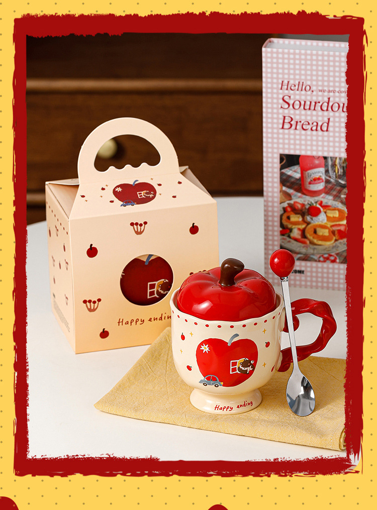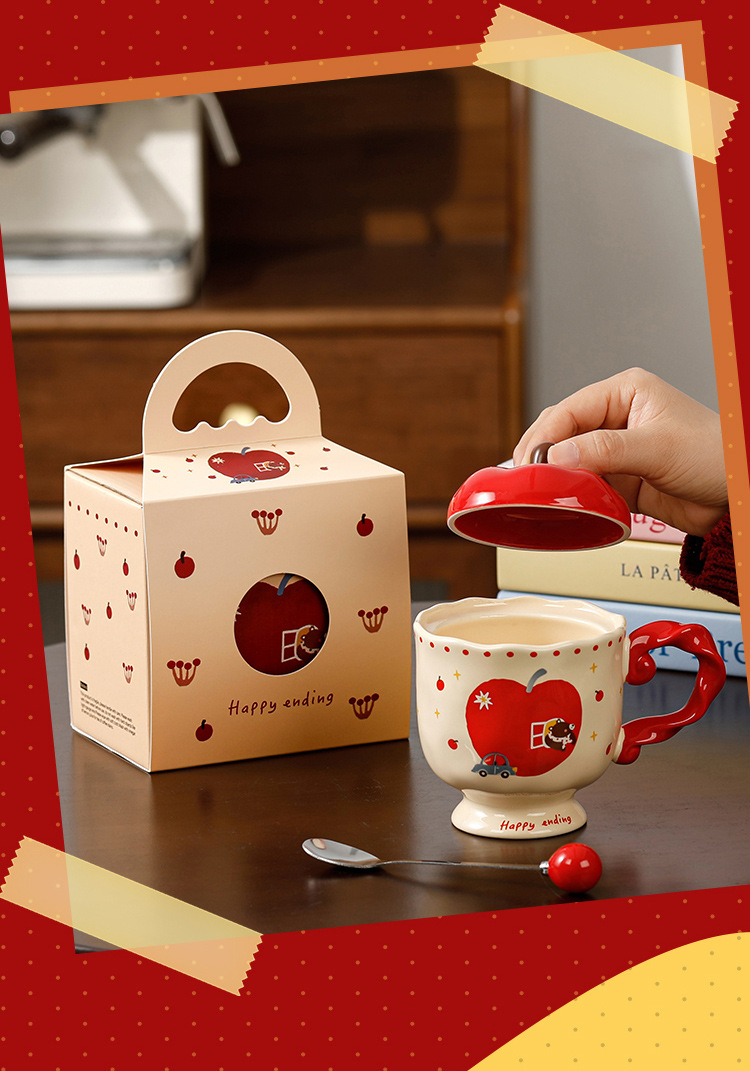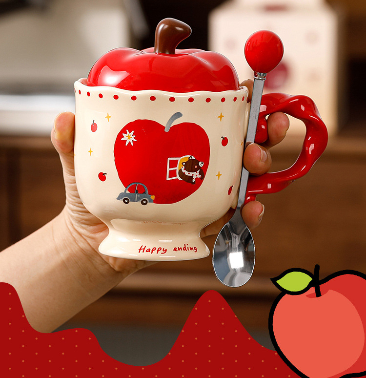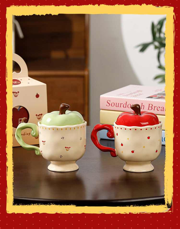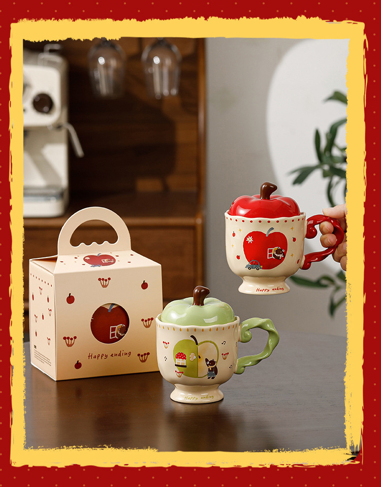 귀여운 애플 머그잔 뚜껑 세라믹 컵과 함께 선물 마시는 컵 사무실 높은 색상 가치 커피 컵 크리스마스스토어 가기