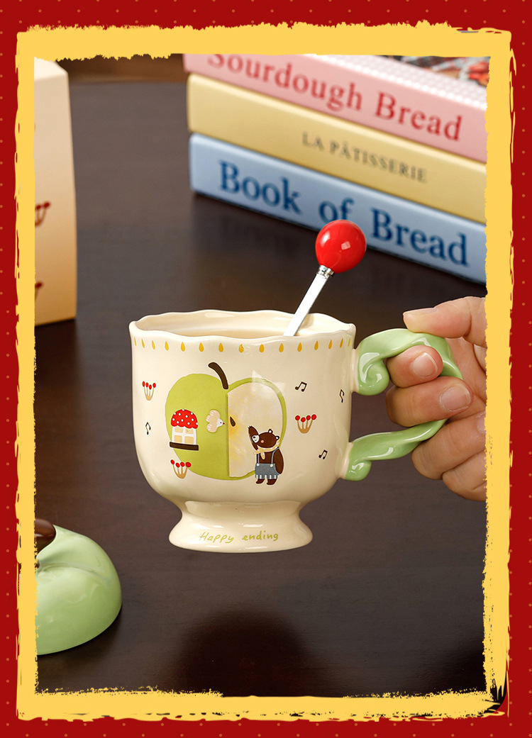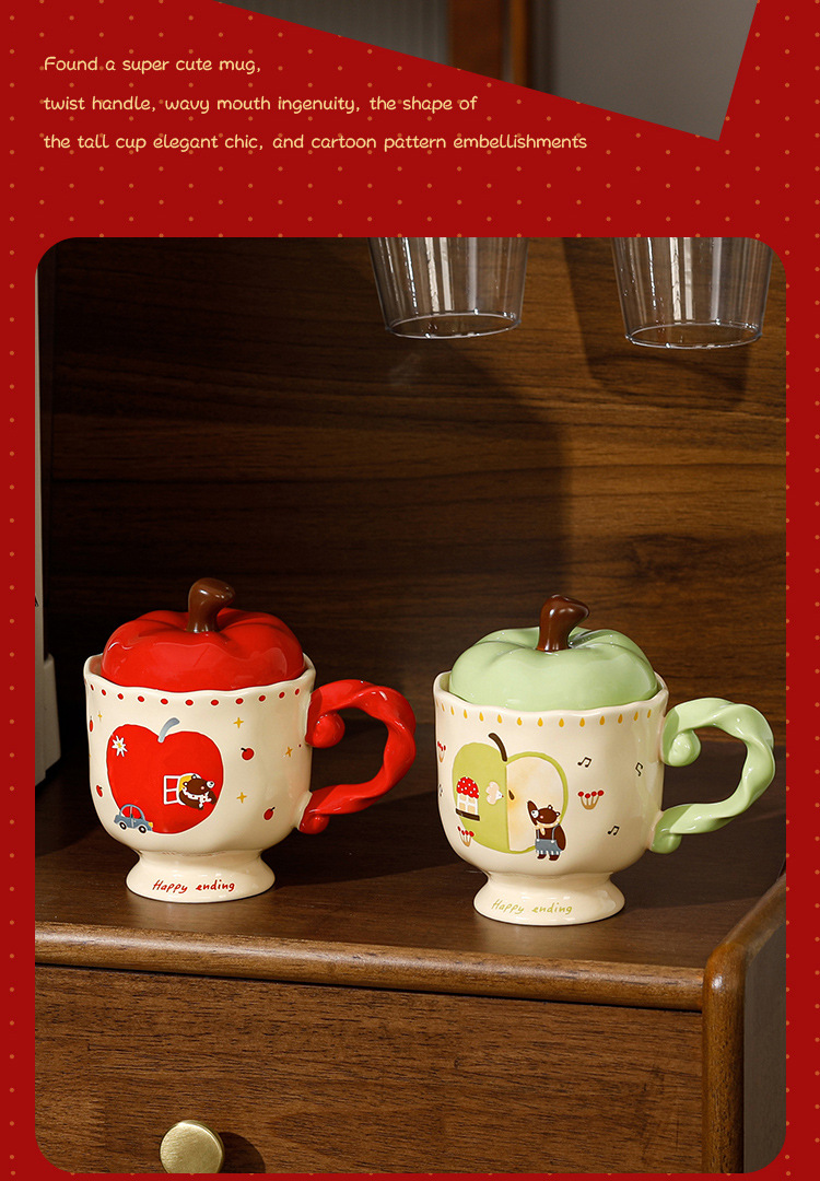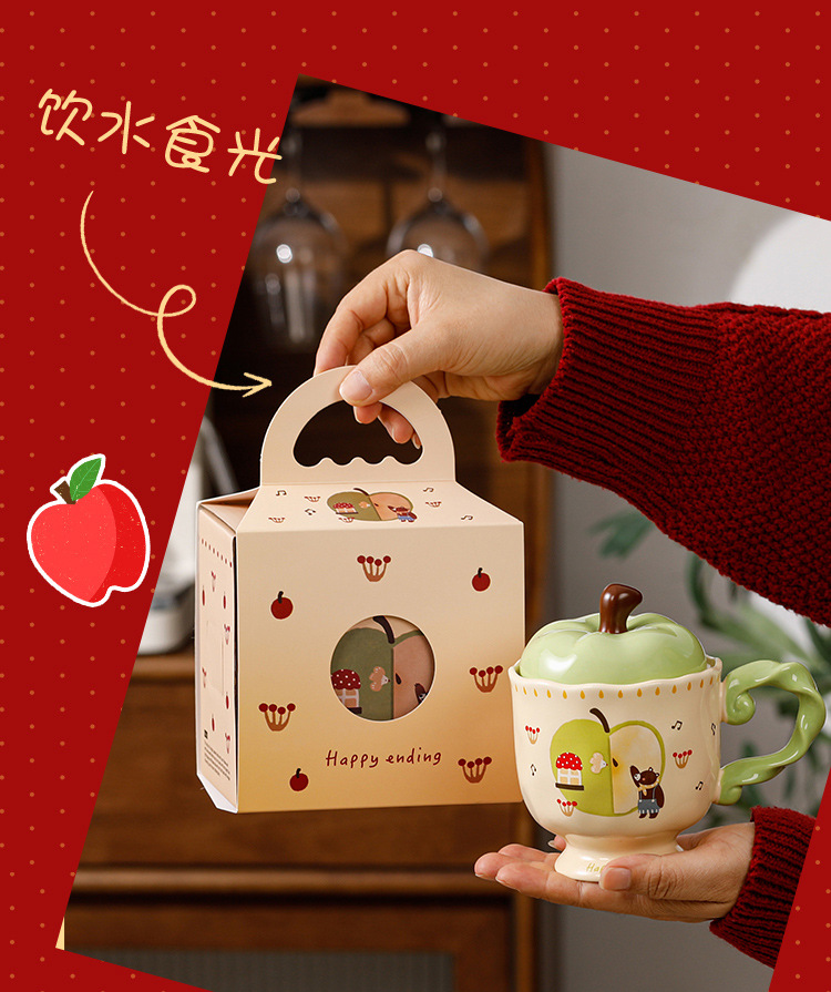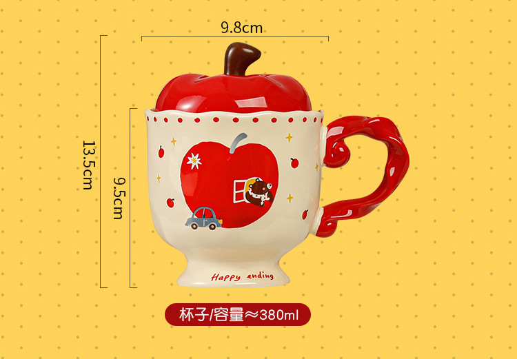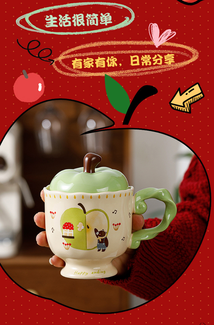 귀여운 애플 머그잔 뚜껑 세라믹 컵과 함께 선물 마시는 컵 사무실 높은 색상 가치 커피 컵 크리스마스스토어 가기