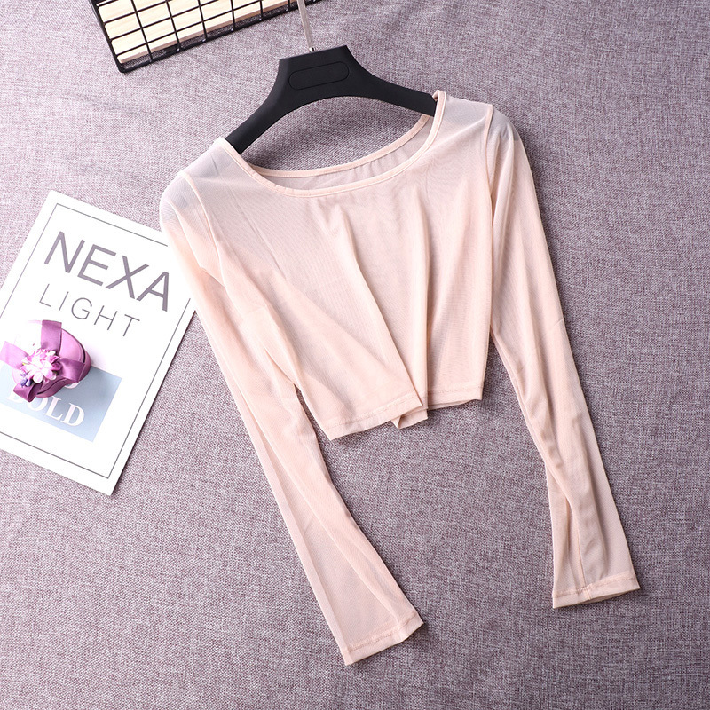하프 메쉬베이스 셔츠 가을 검은 섹시한 레이스 반 배꼽 긴 소매 내부 레이스 칼라 티셔츠 여성용 셔츠스토어 가기