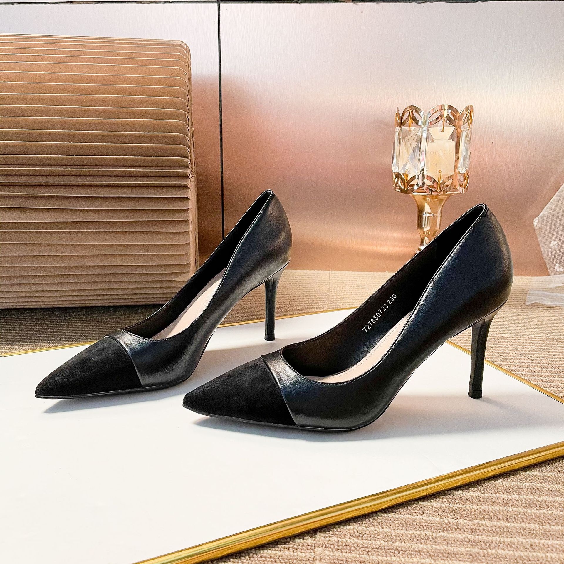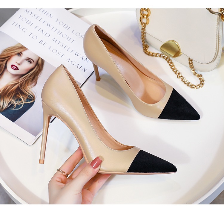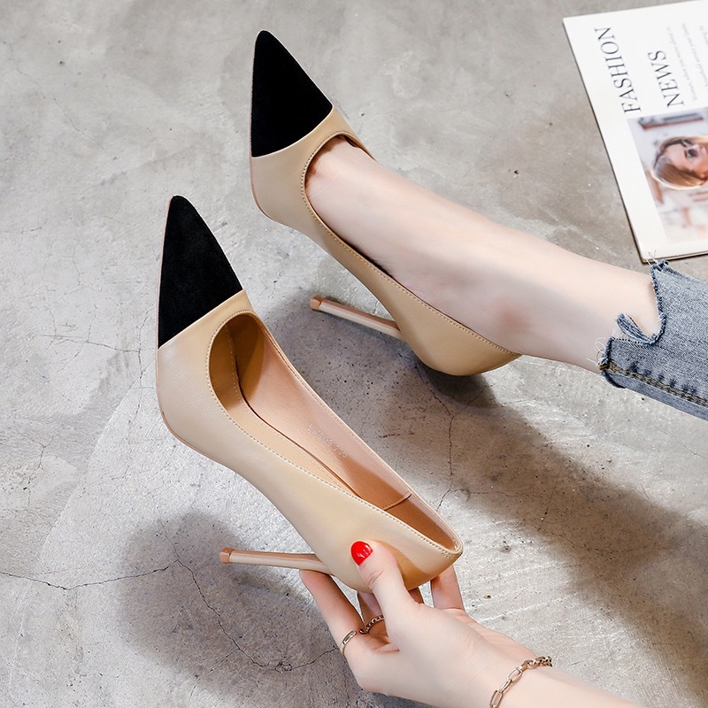 가을 2025 새로운 하이힐 여성용 스틸레토 힐 색상 매칭 샤넬 스타일 신발 누드 컬러 우아한 여성 신발