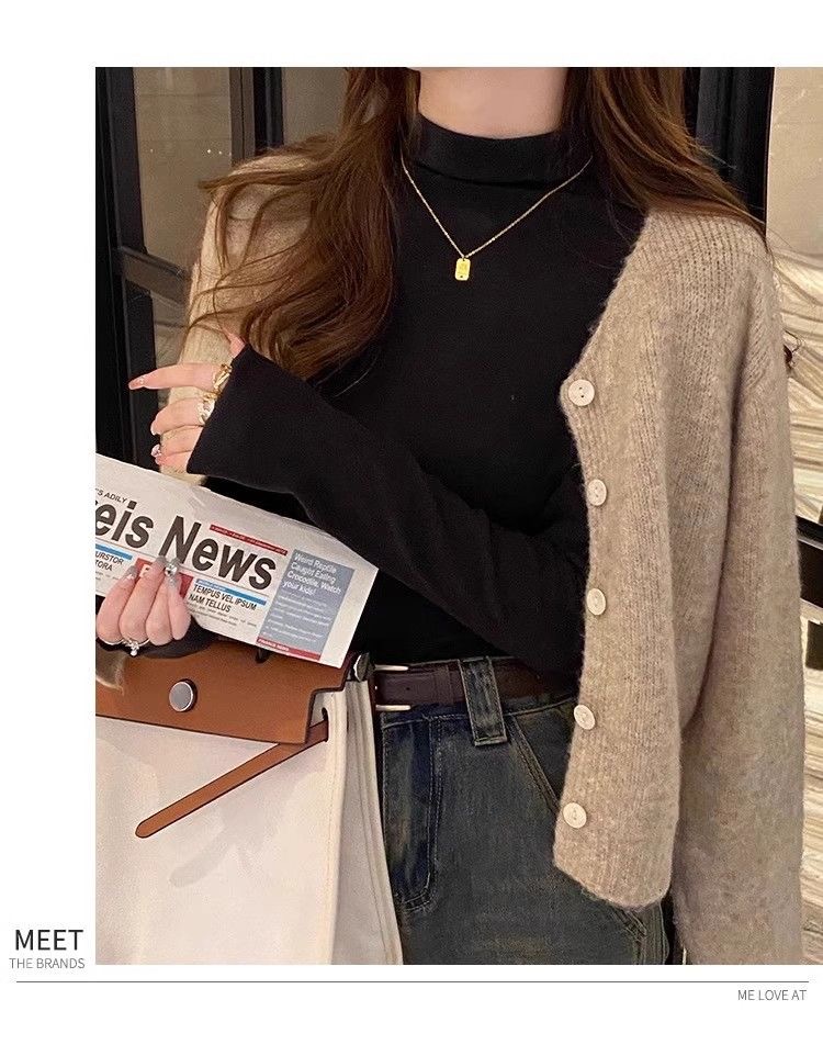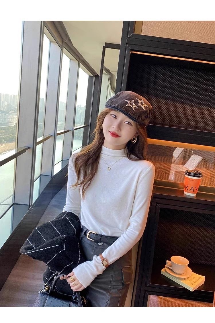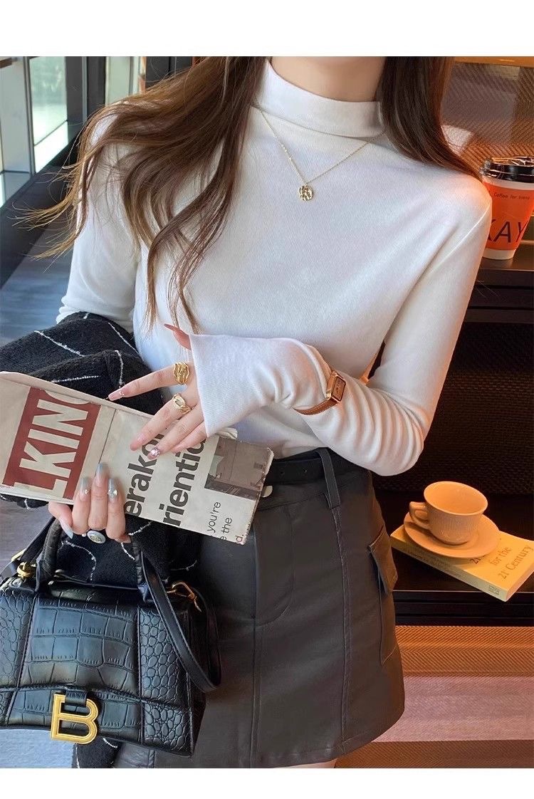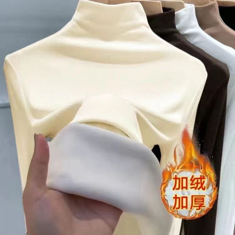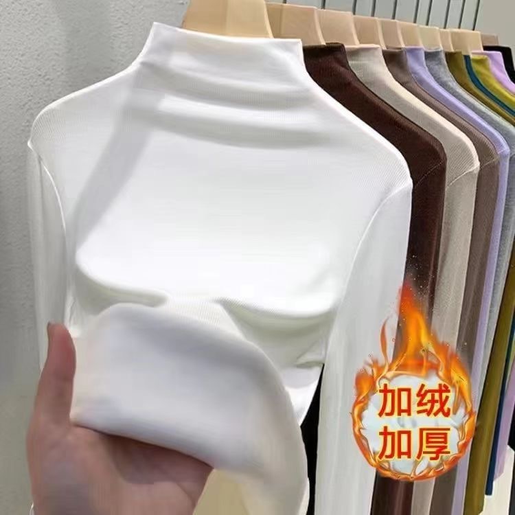 실버 폭스 캐시미어 기모 두꺼운 반 높이 칼라베이스 셔츠 여성의 가을 및 겨울 새로운 슬림 핏 슬림 따뜻한 긴팔 탑