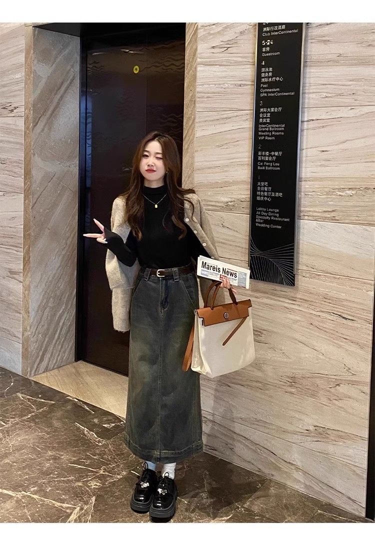 실버 폭스 캐시미어 기모 두꺼운 반 높이 칼라베이스 셔츠 여성의 가을 및 겨울 새로운 슬림 핏 슬림 따뜻한 긴팔 탑스토어 가기