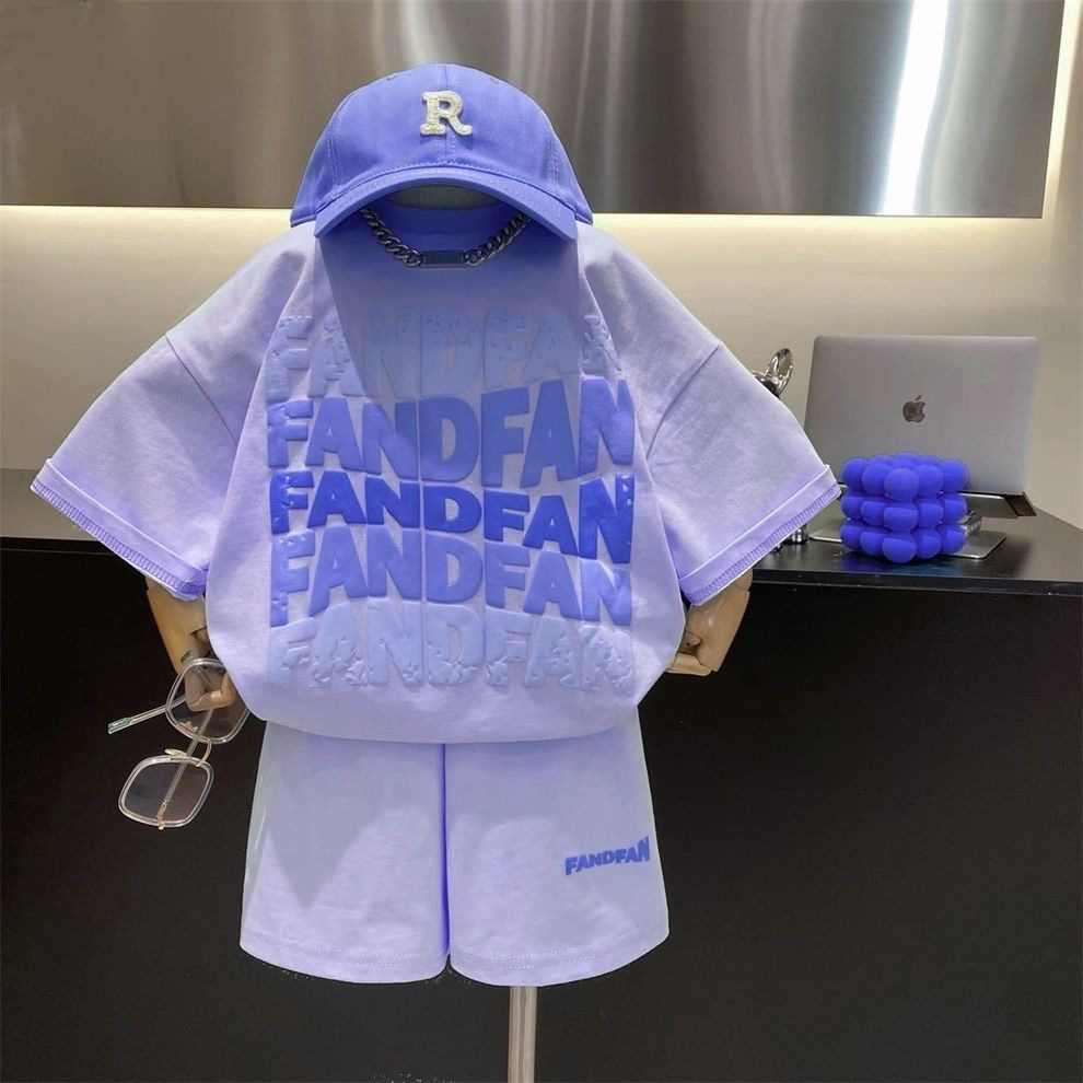 여름 소년 소녀 세트 아기 세련된 어린이 성격 유행 브랜드 대외 무역 INS 편지 반팔 티셔츠 스포츠 반바지