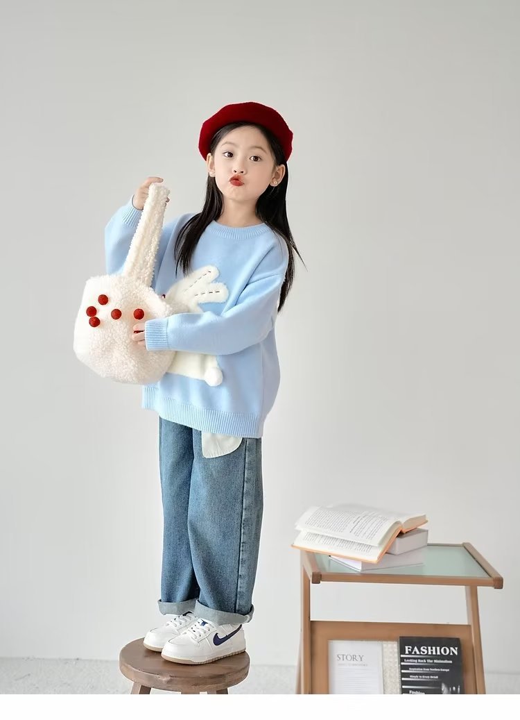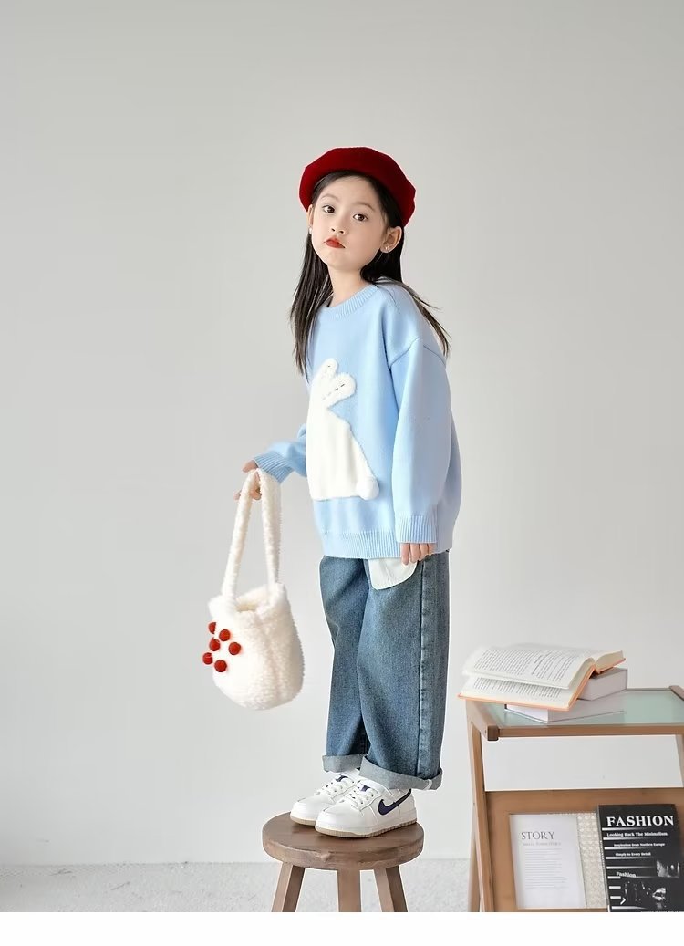 아동복 여자 스웨터 2024 가을 새 어린이 느슨한 한국 스타일 웨스턴 스타일 니트 아기의 둥근 목 따뜻한 탑스토어 가기